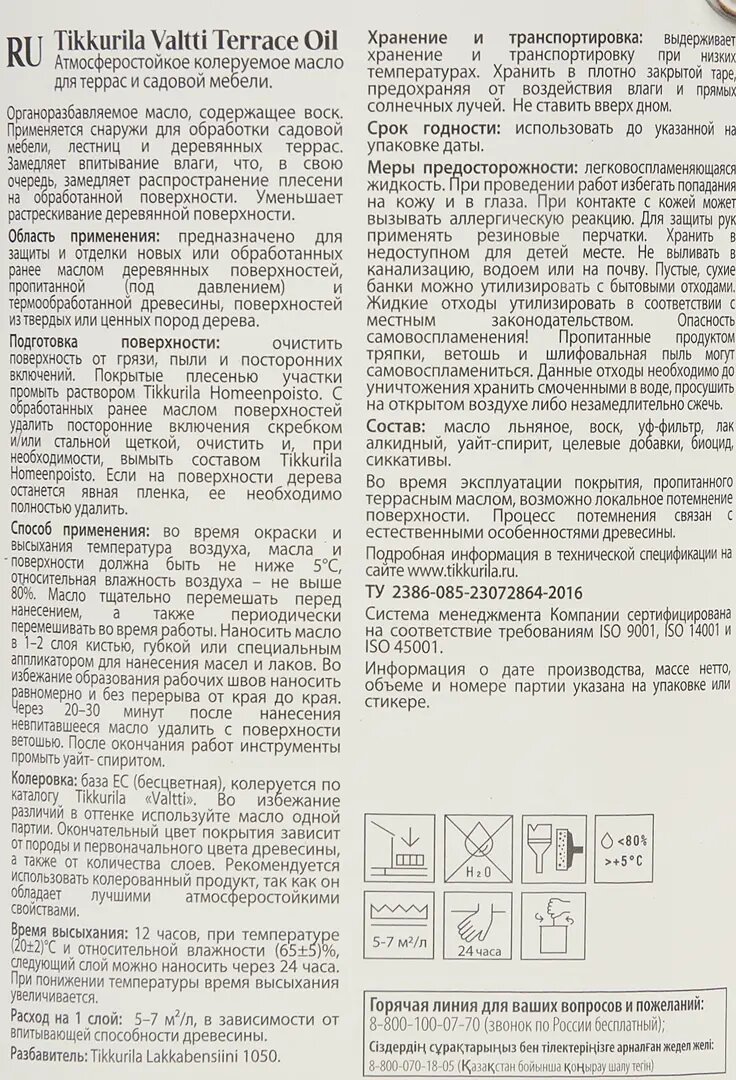 Масло Tikkurila Valtti Terrace Oil для террас основа EC 2,7 л информация: