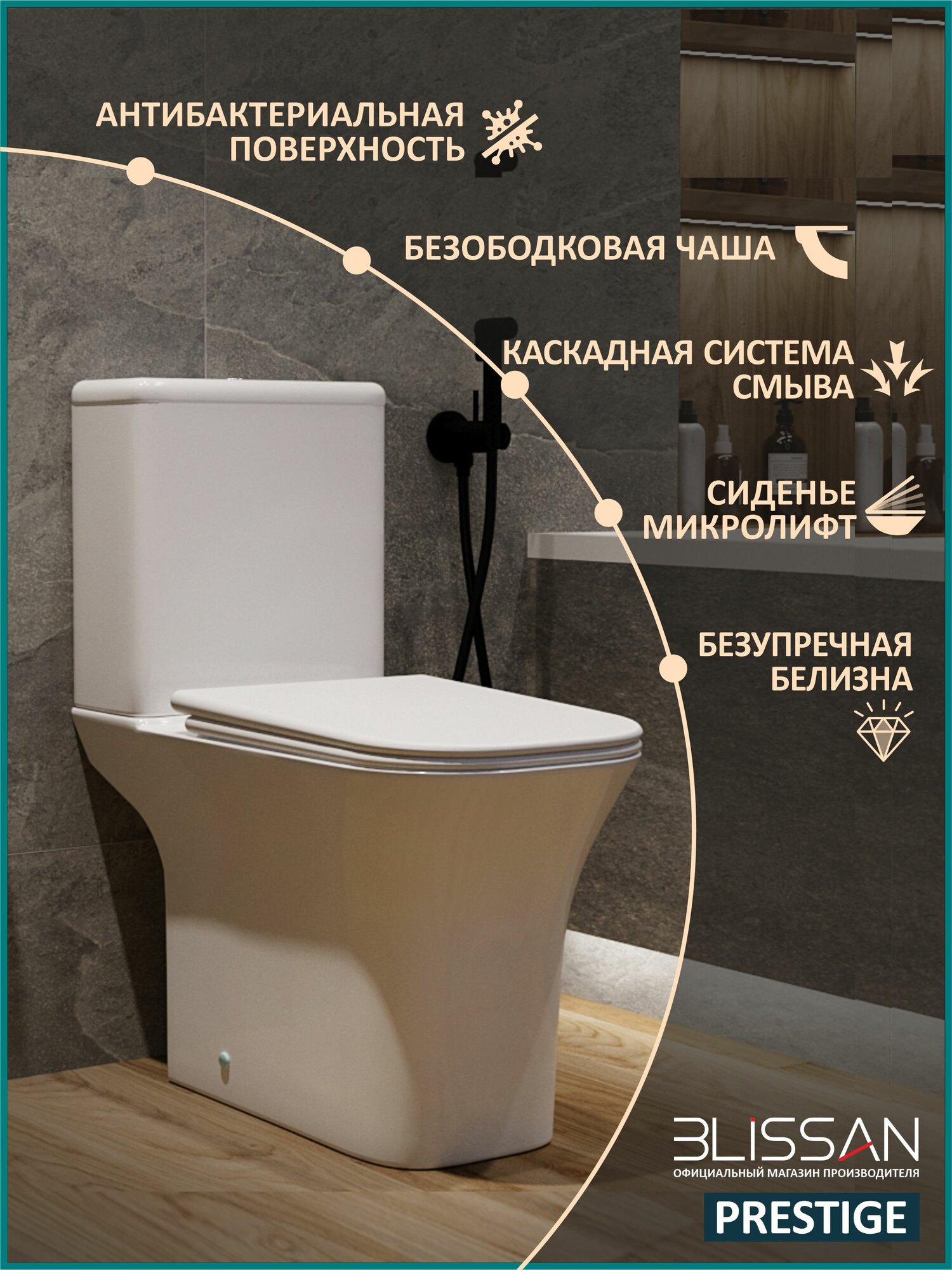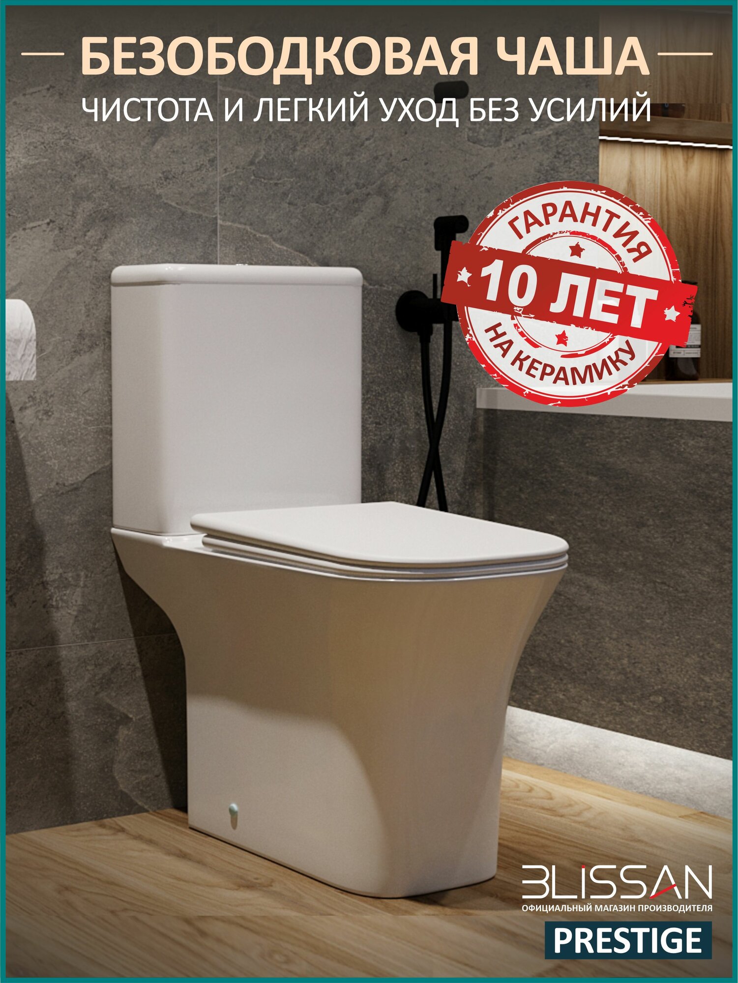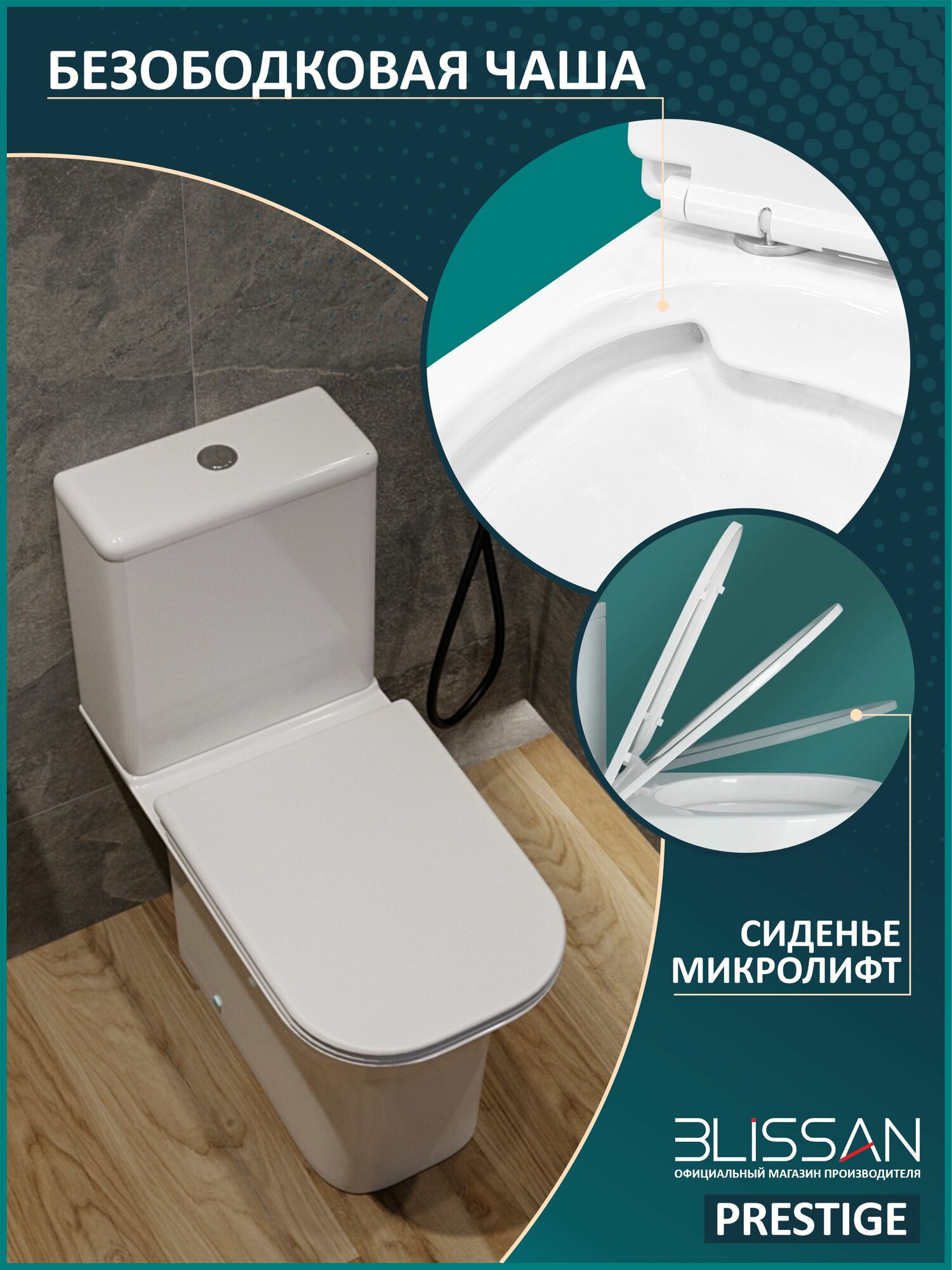 10 цен на Унитаз напольный безободковый BLISSAN Prestige Rimless с сиденьем микролифт быстросъемное