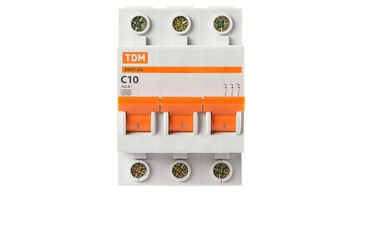 Отзывы на Автоматический выключатель TDM Electric ВА47-63 3P 10А (C) 4.5кА, SQ0218-0018