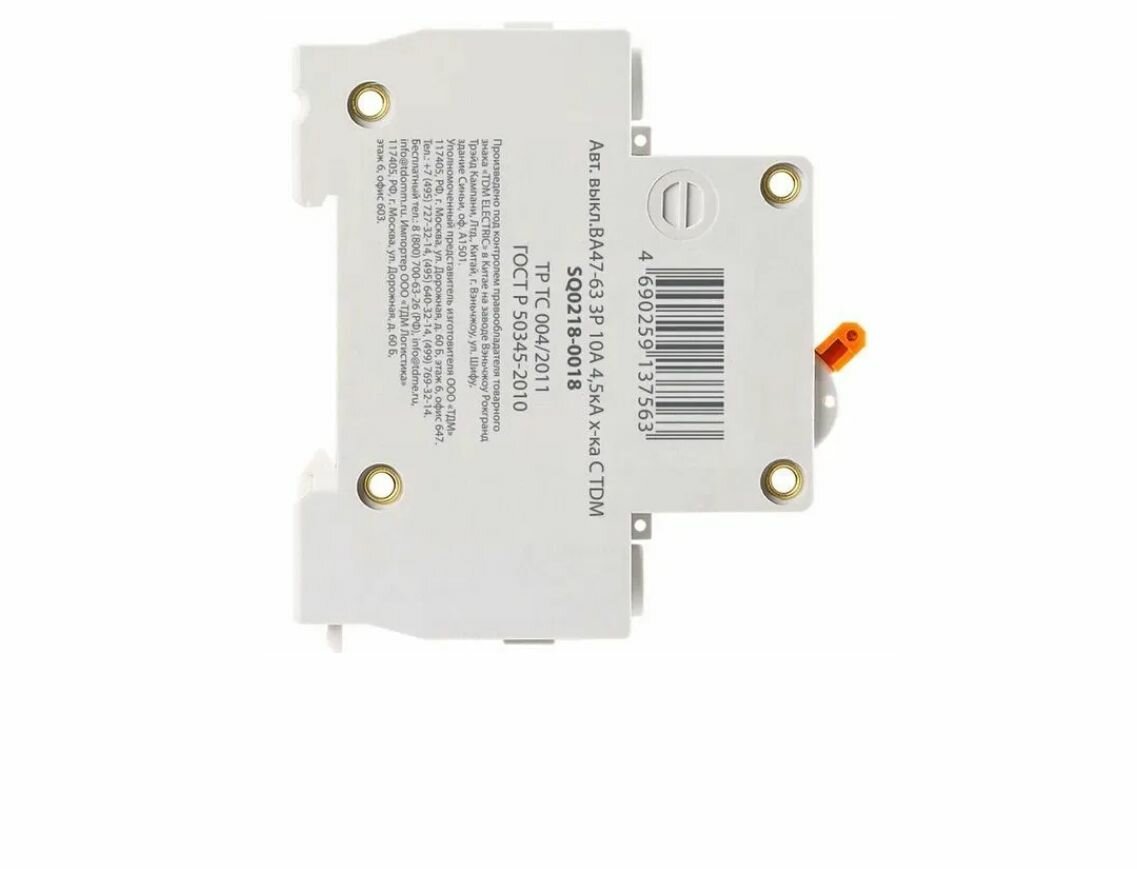 Автоматический выключатель TDM Electric ВА47-63 3P 10А (C) 4.5кА, SQ0218-0018 информация: