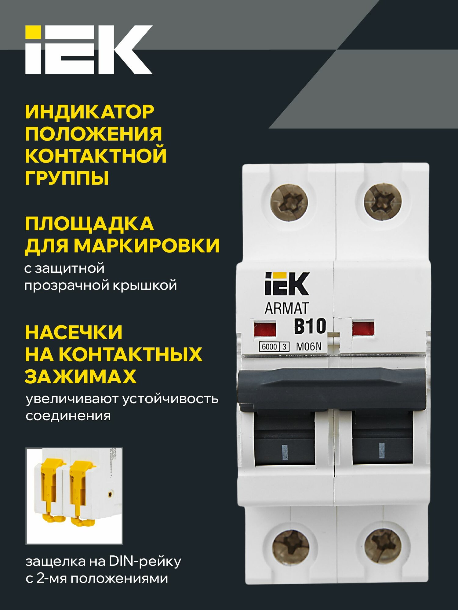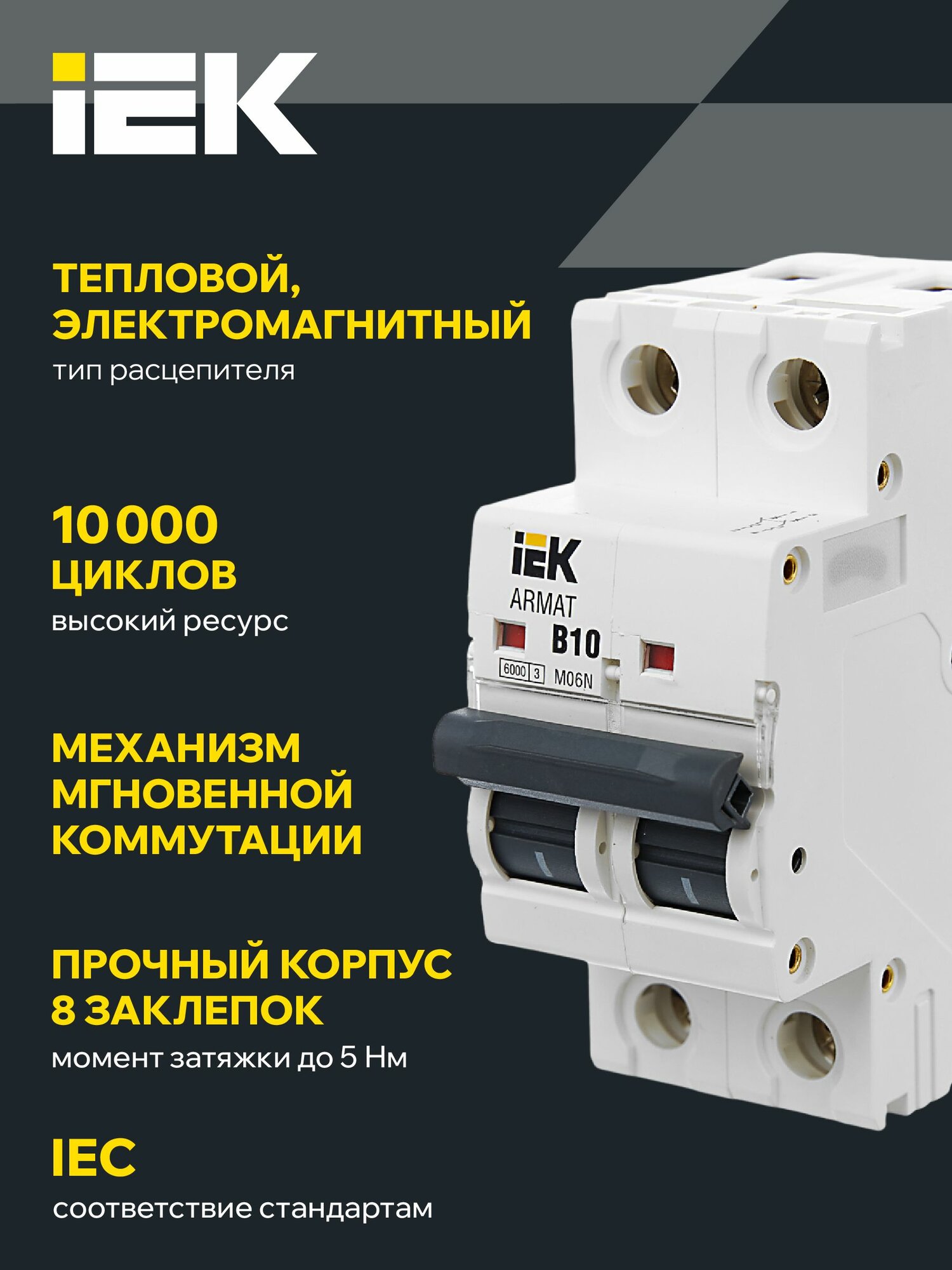 ARMAT Выключатель автоматический двухполюсный B 10А M06N , IEK AR-M06N-2-B010 (1 шт.) информация: