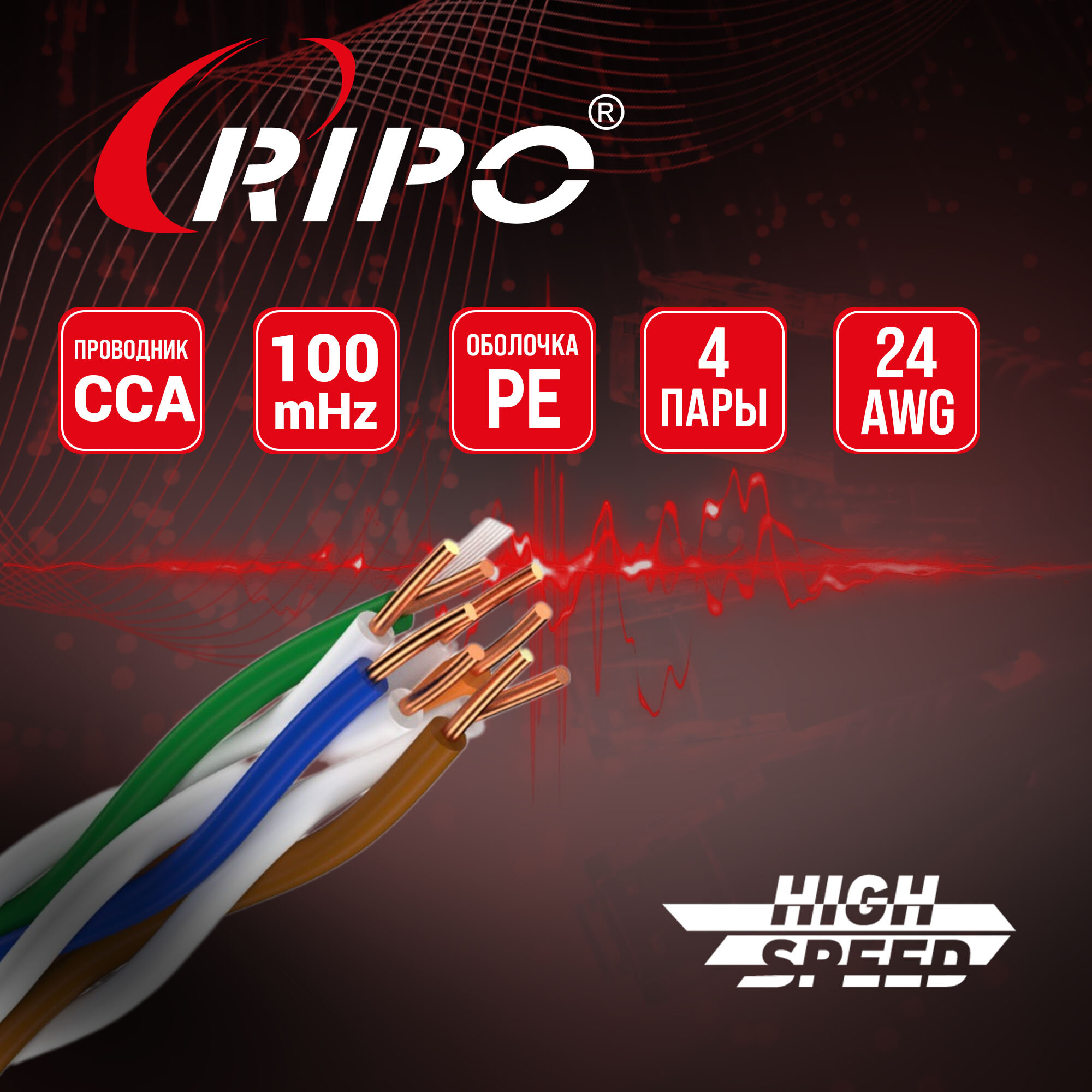 10 цен на Кабель витая пара для локальной сети LAN UTP4 CAT5E 24AWG CCA PE RIPO outdoor уличный 305 метров 001-112003