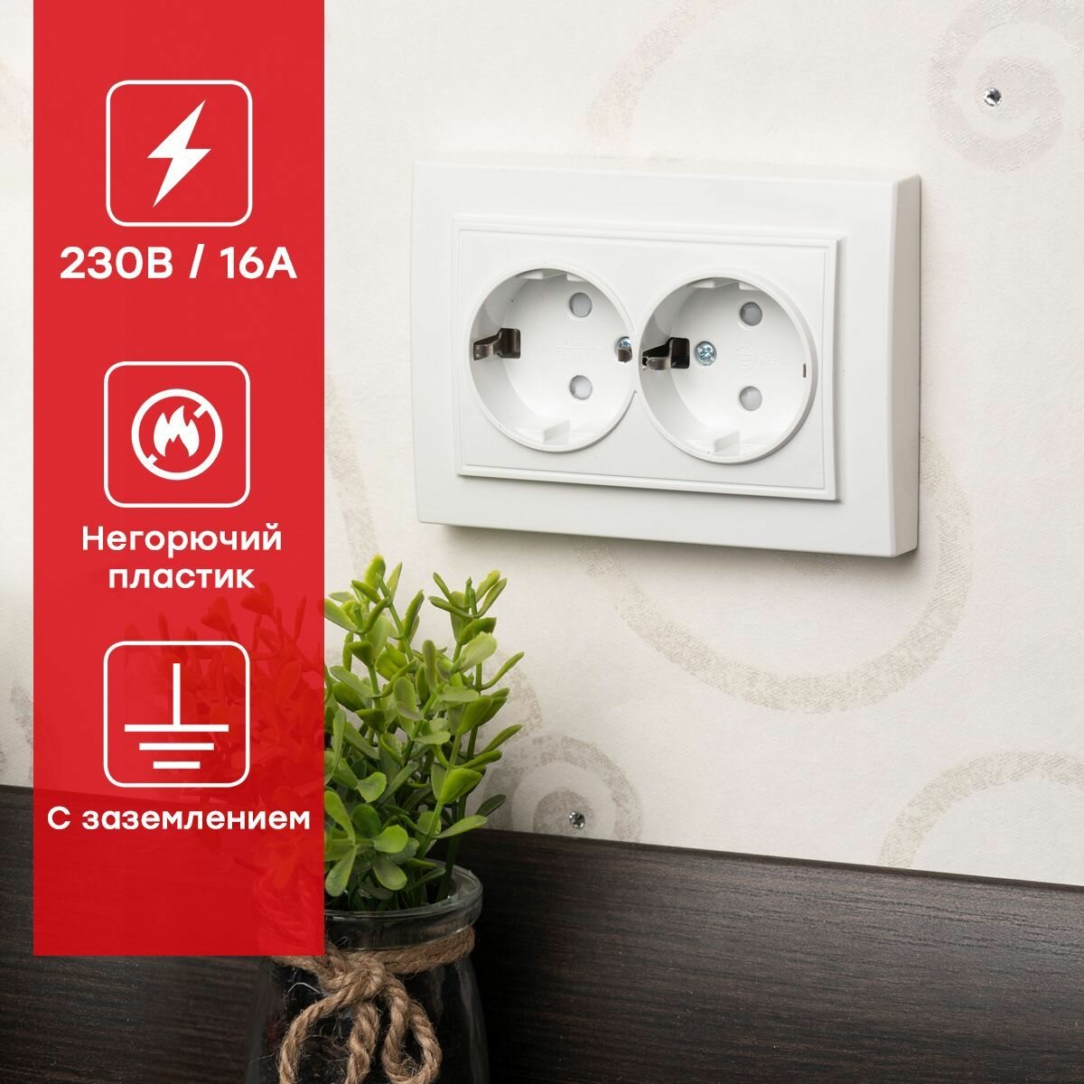 10 цен на Розетка 2-местная с защитной шторкой СП Минск, с заземлением, 16А, белая
