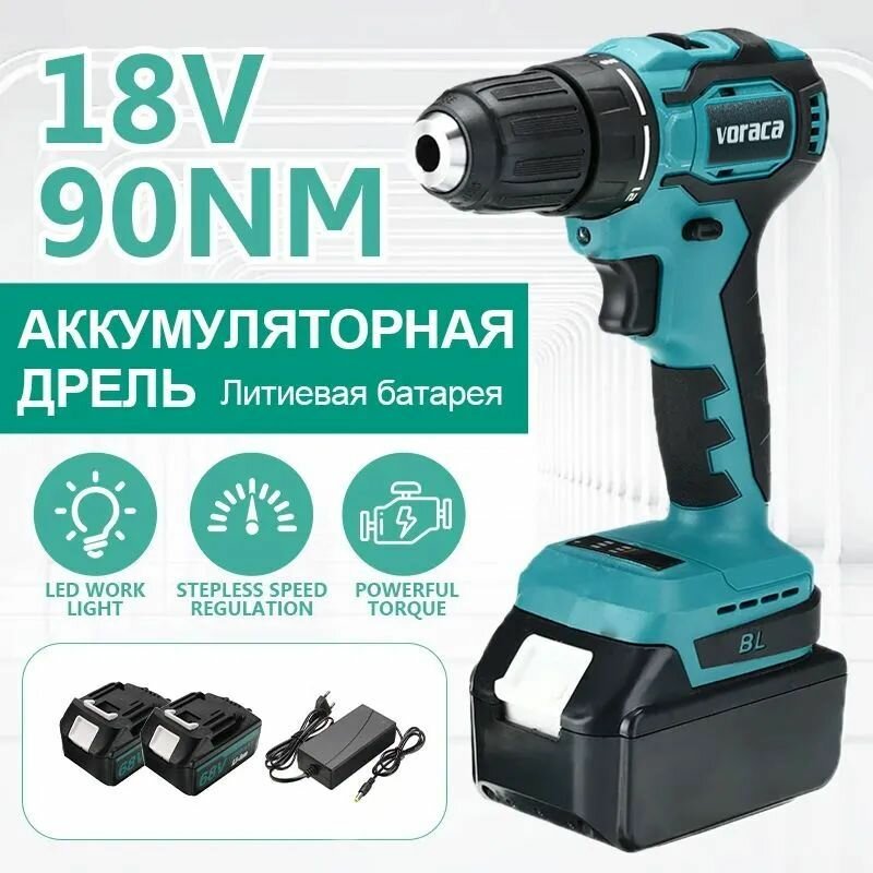 Дрель-шуруповерт Дрель-шуруповерт , От аккумулятораЭлектрическое беспроводное ударное сверло 18В 90Нм