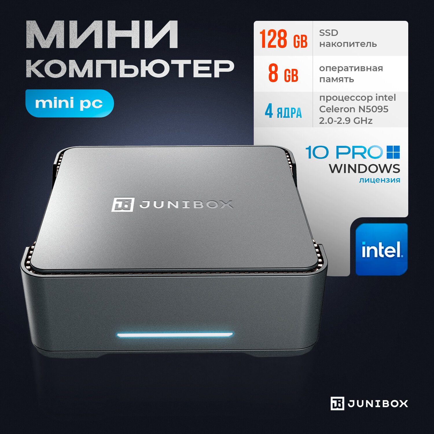 Мини ПК JuniBox К3+ DDR 8gb/SSD 128gb, Intel Celeron N5095 (2.0 ГГц), RAM 8 ГБ, SSD 128 ГБ, Intel HD Graphics 600, Windows 10 Pro), черный информация: