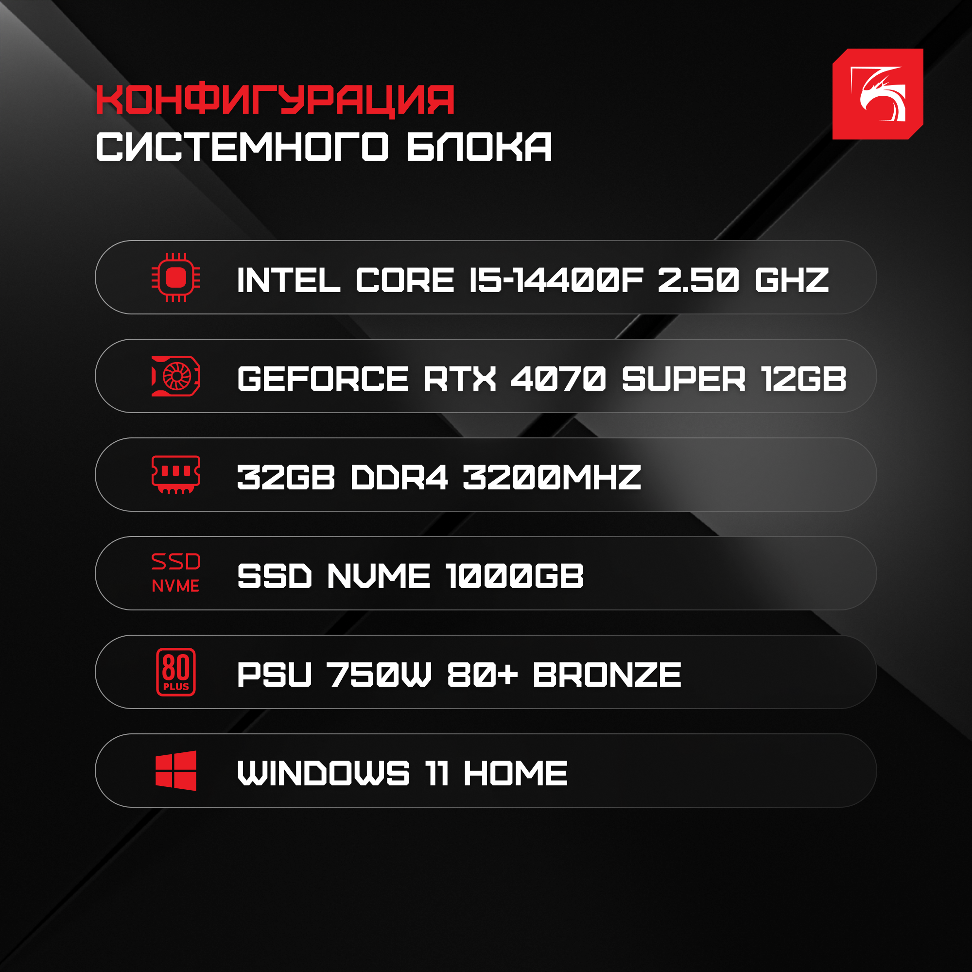 Игровой компьютер DigitalRazor i5-14400F+RTX4070Super+32GB DDR4+1TB SSD информация: