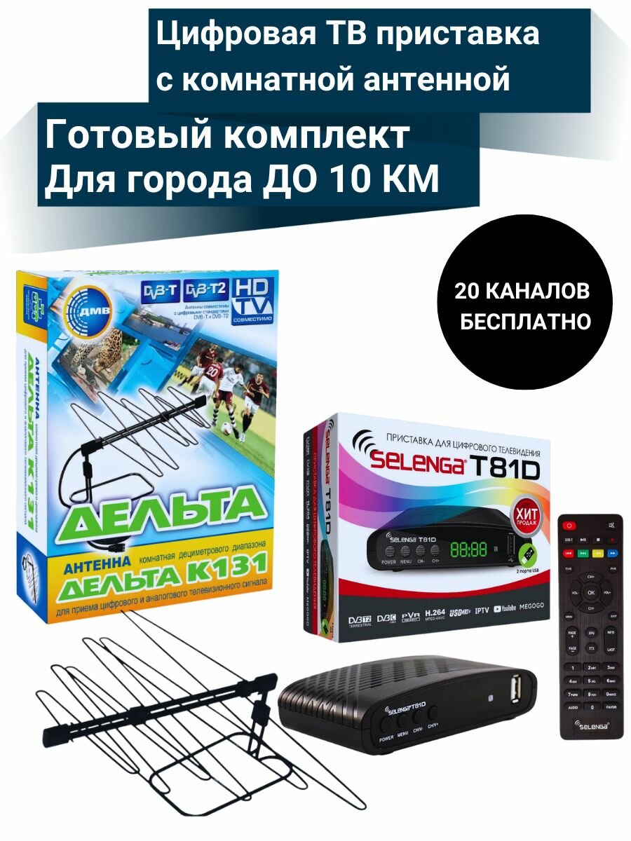 10 цен на Цифровая ТВ приставка DVB-T2 с комнатной пассивной антенной