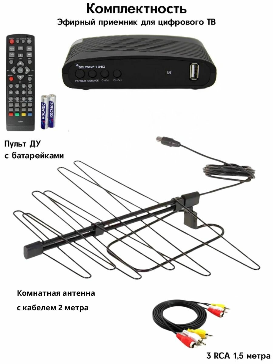 Цифровая ТВ приставка DVB-T2 с комнатной пассивной антенной информация: