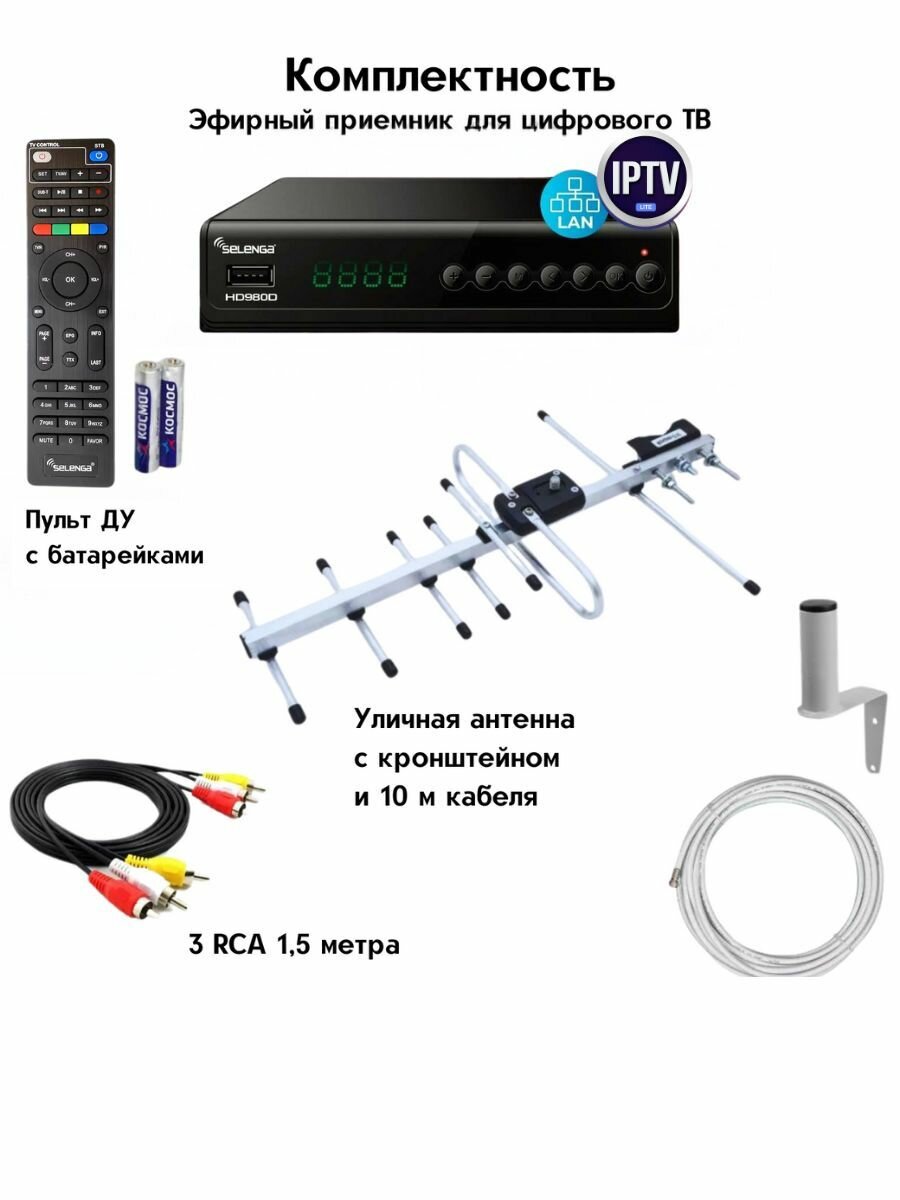 Цифровая ТВ приставка HD 980D DVB-T2 с уличной активной антенной 35 дБ до 80 км (Кабельная сборка 10м) 5 450 ₽