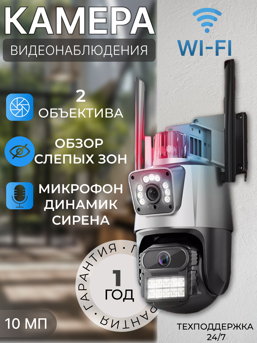 Камера видеонаблюдения wifi двойная уличная/С СИРЕНОЙ НА 10МП информация:
