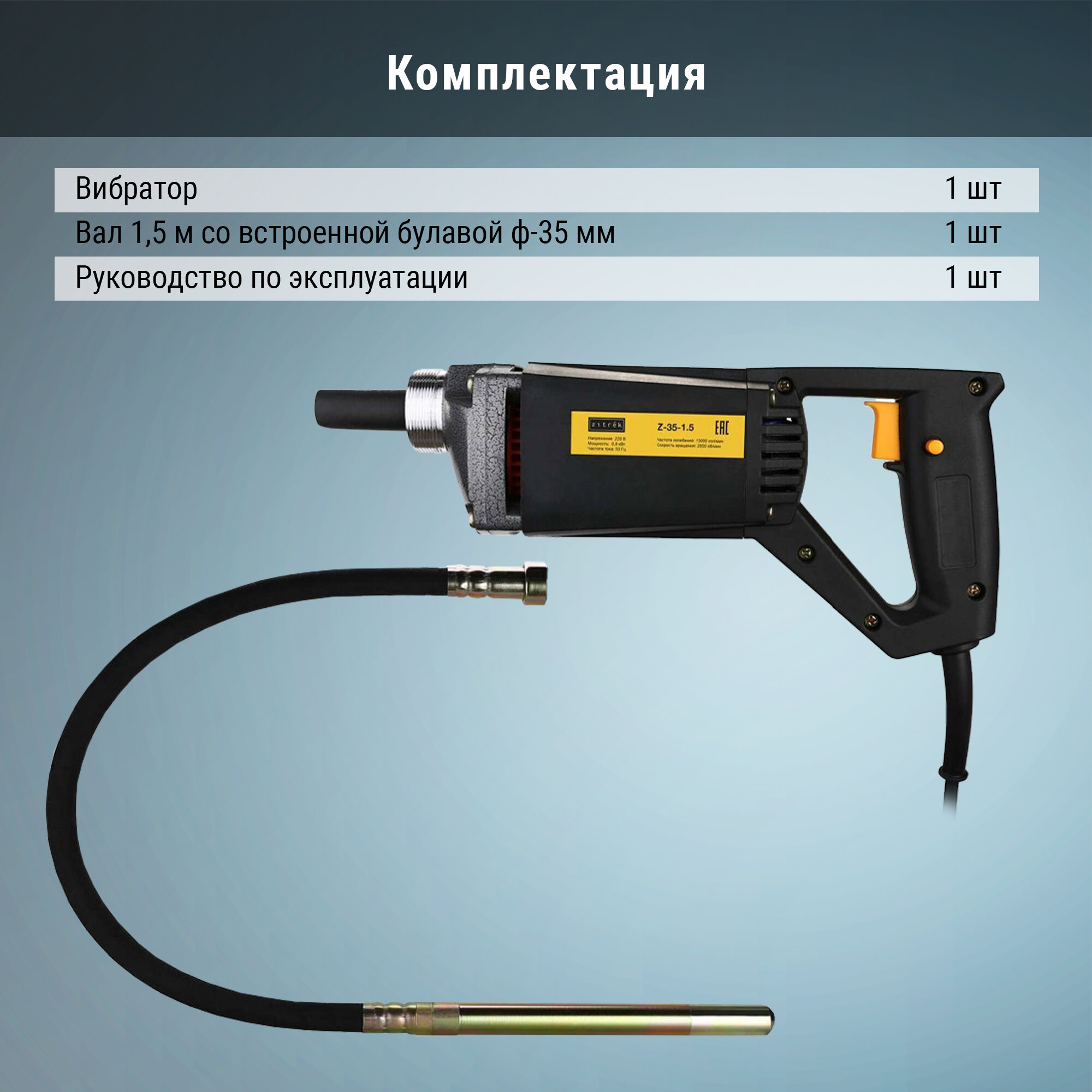 Вибратор портативный Zitrek Z-35-1.5, 220В, вал 1.5м., со встроенной булавой ф-35мм. информация: