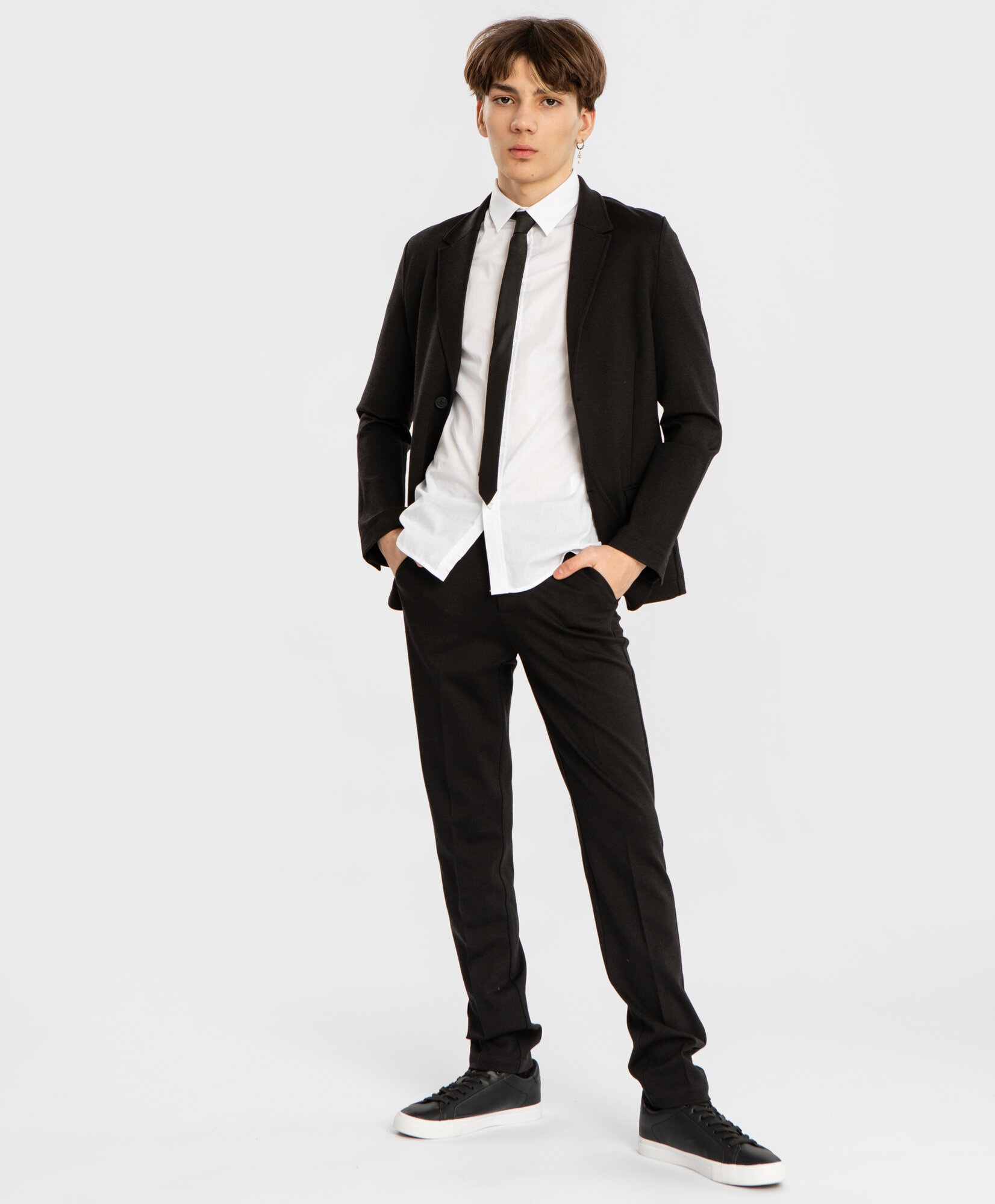 Пиджак однобортный на пуговицах черный Button Blue, р. 140, мод. 224BBBS19010800