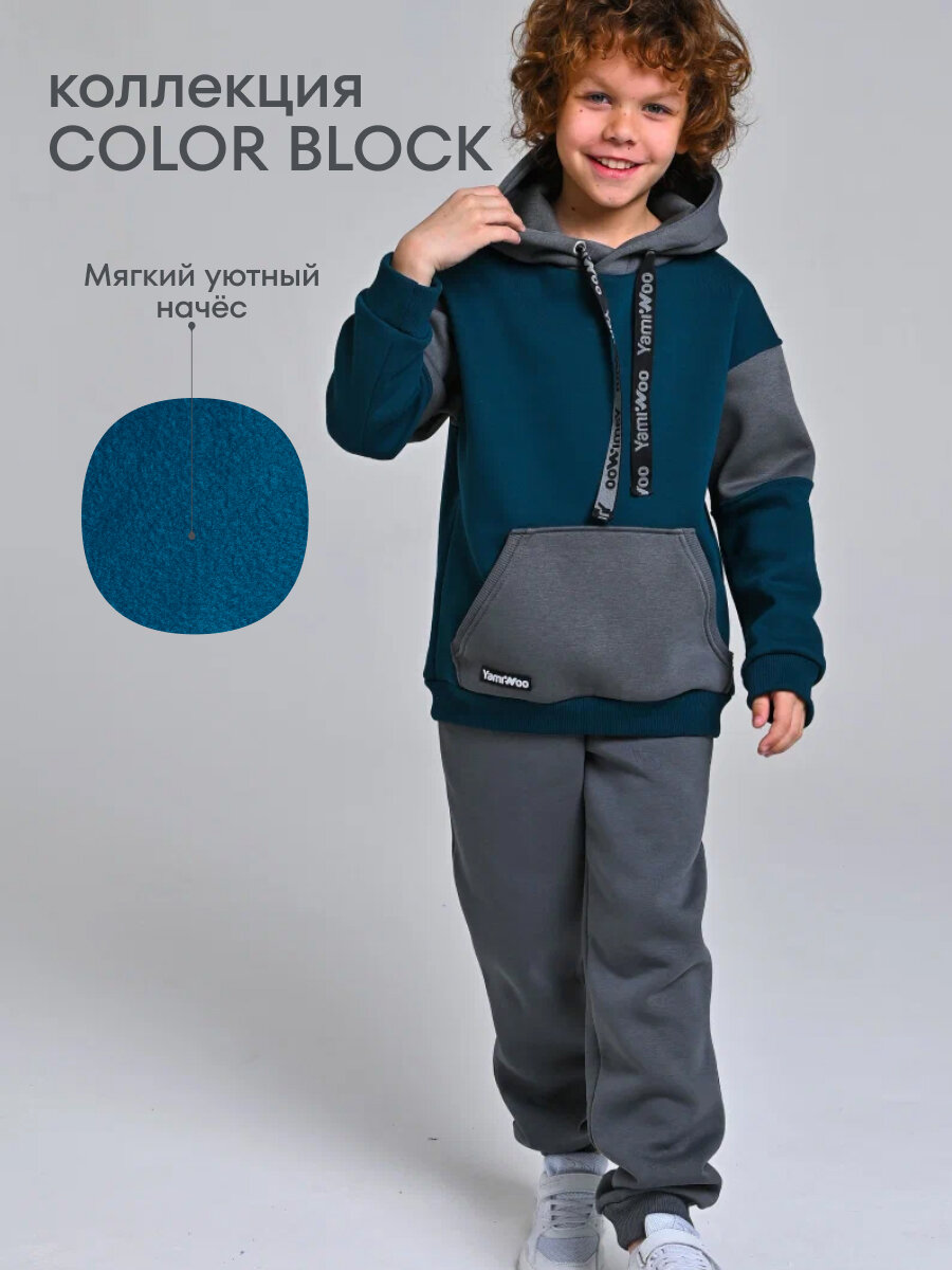 Спортивный костюм для мальчика с начесом Yamiwoo, изумруд, размер 128 информация: