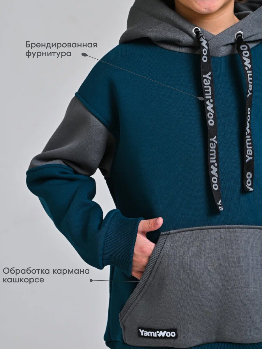 Спортивный костюм для мальчика с начесом Yamiwoo, изумруд голубой, размер 158 3 500 ₽