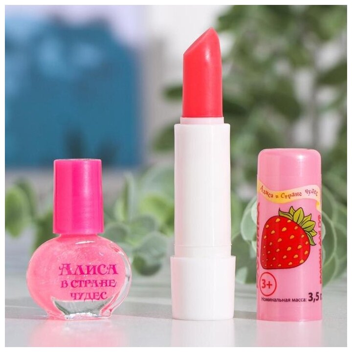10 цен на FESTIVA, Набор детской декоративной косметики, алиса В стране чудес,Сказочный переполох, Бальзам для губ Клубника+Лак для ногтей