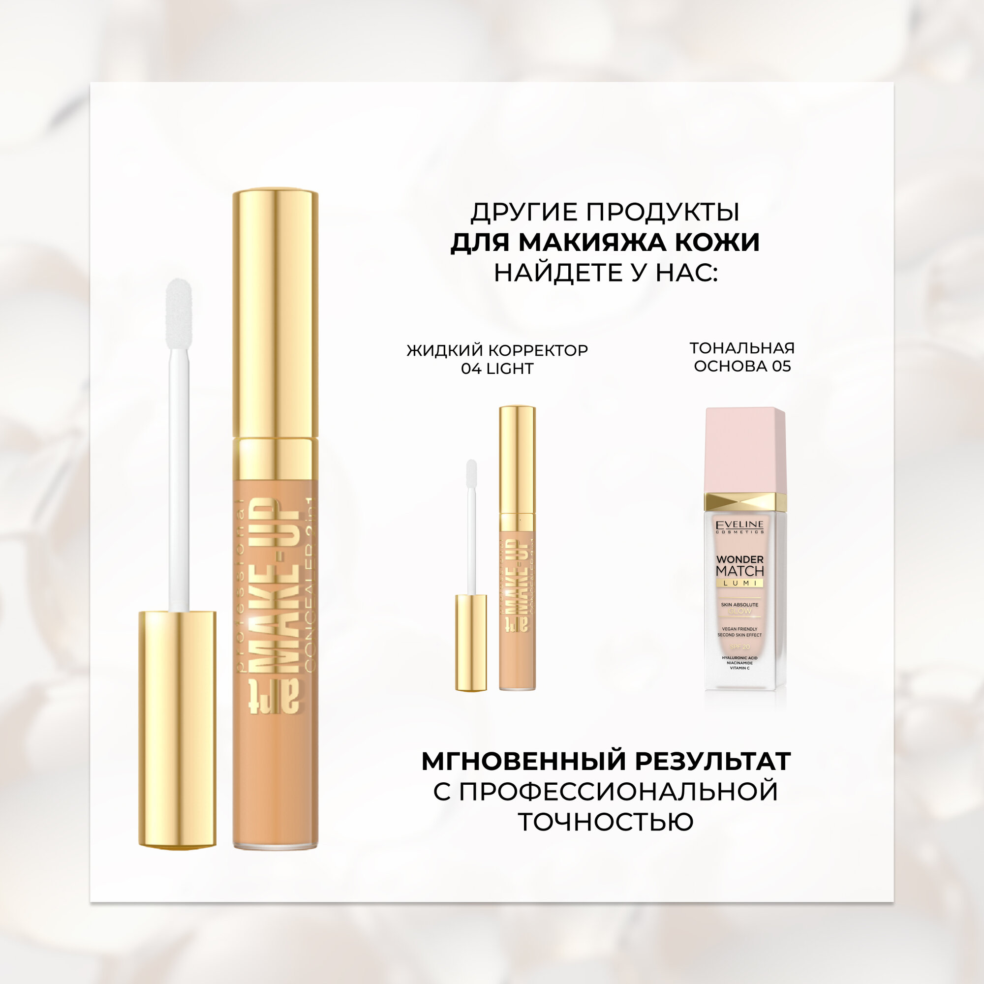 Корректор для лица EVELINE ART PROFESSIONAL MAKE-UP тон 04 (light) 2 в 1 светоотражающий с кисточкой