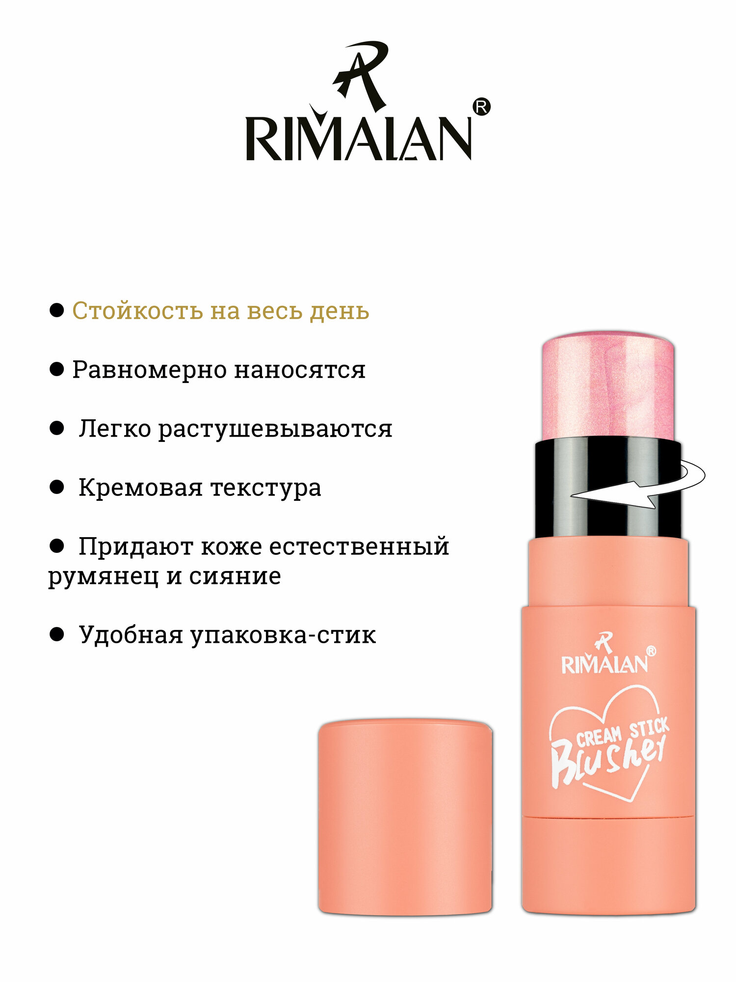 Румяна Крем-Стик, Glamorous, RIMALAN, CSB-002-03, Гламурное сияние.