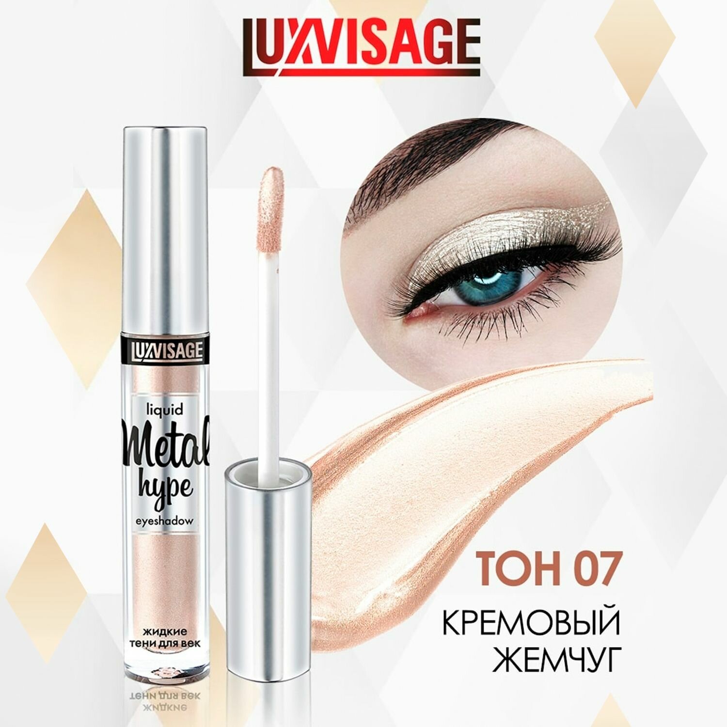 Тени жидкие для век Metal hype тон 7 кремовый жемчуг, LUXVISAGE