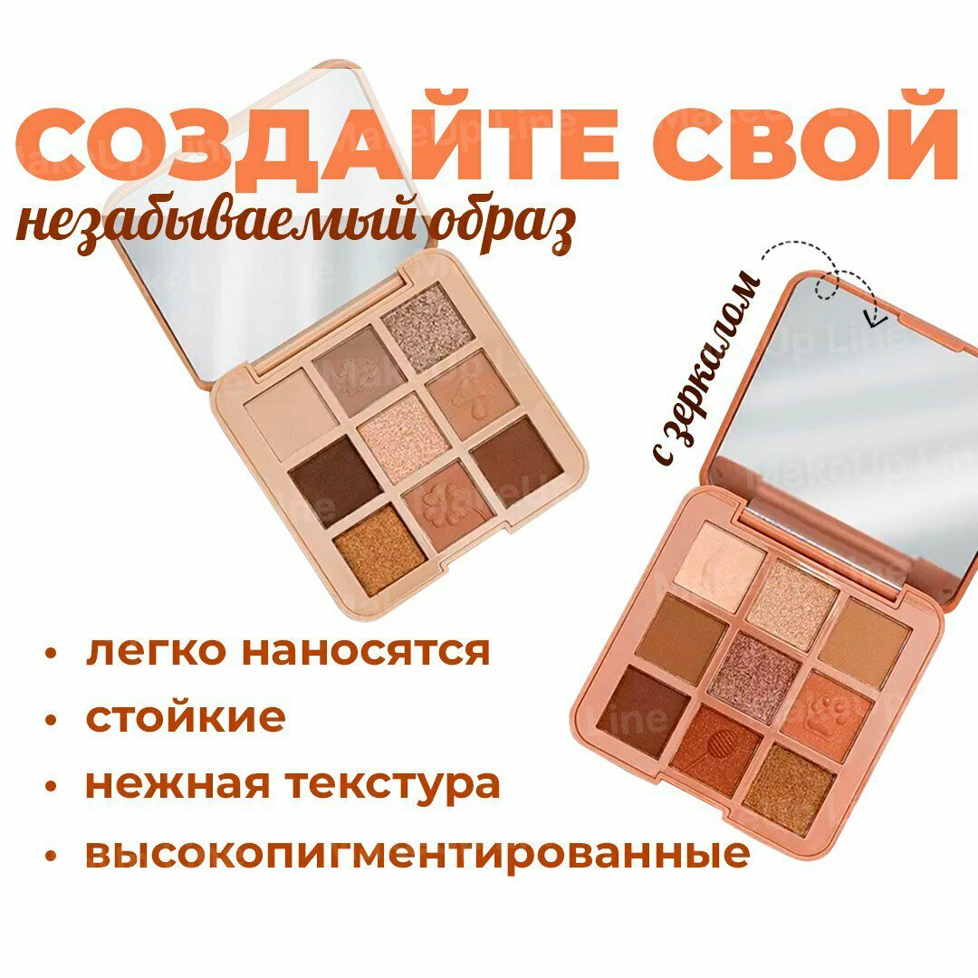 10 цен на Тени для век MakeUp Line "Nude", гипоаллергенные, 9 оттенков