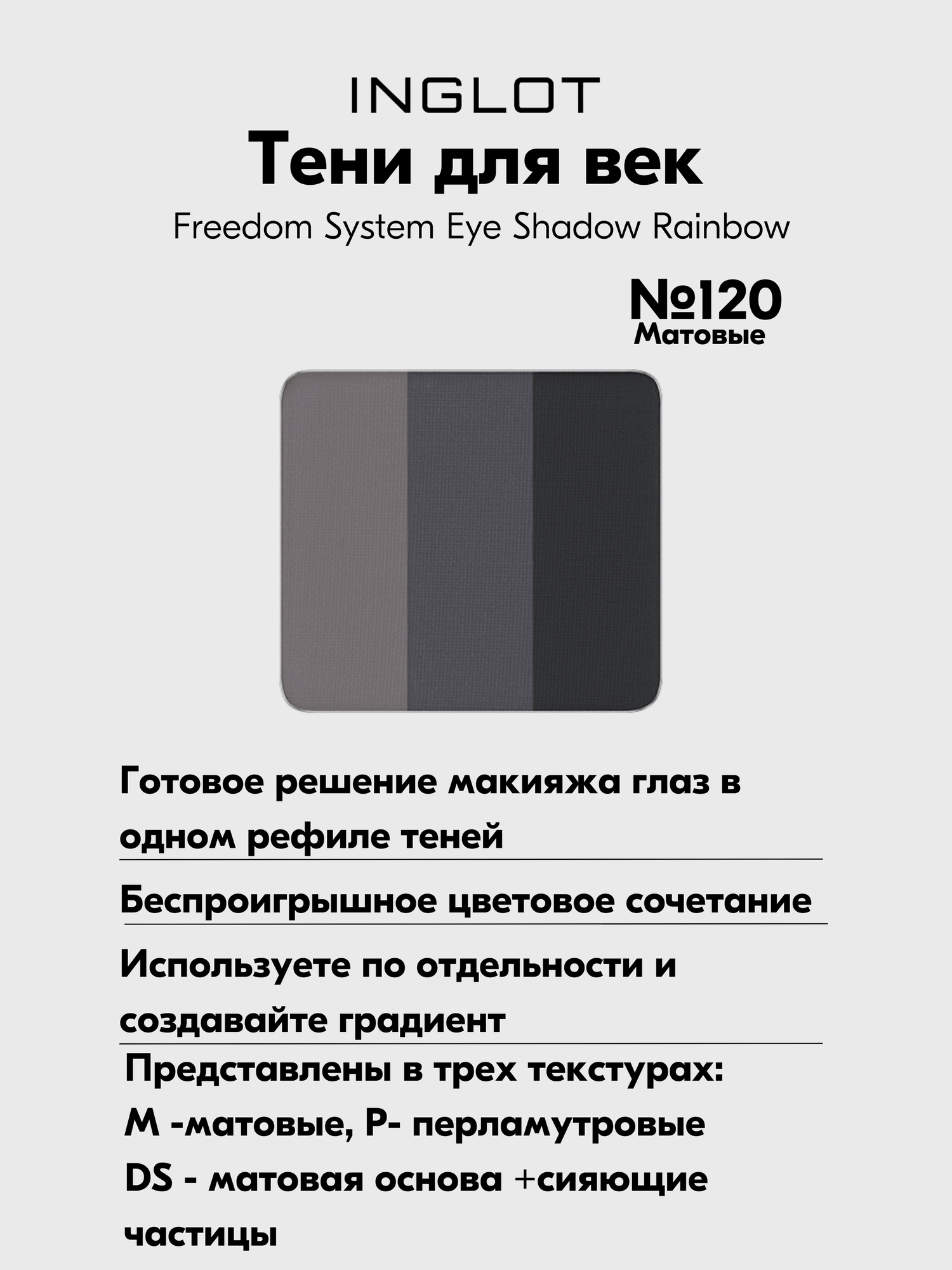 Тени INGLOT матовые для макияжа глаз 3 в 1 Freedom System Eye Shadow Rainbow MATTE №120 информация:
