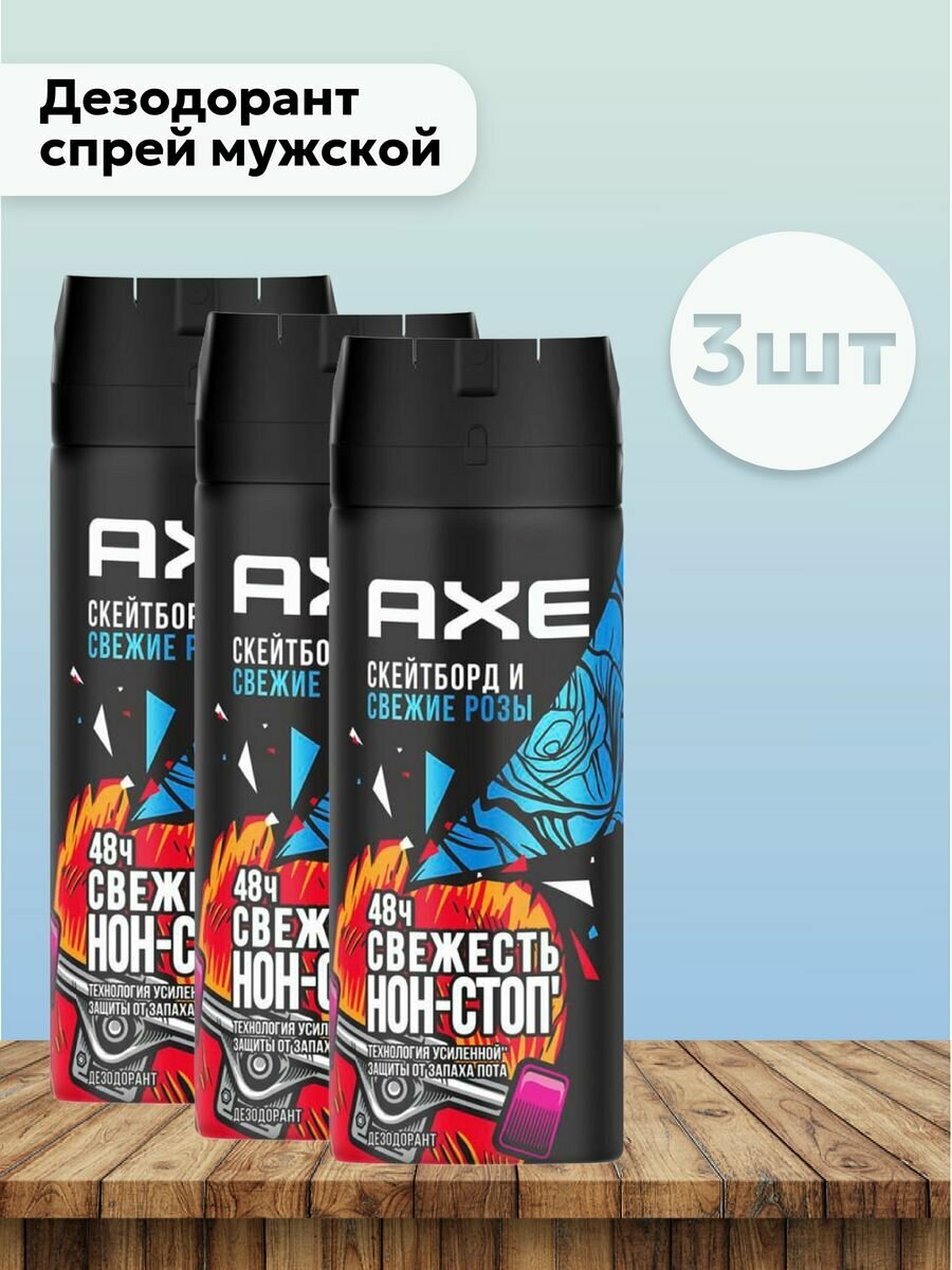 Набор из 3 штук Дезодорант спрей мужской Axe Скейтборд и розы 150мл