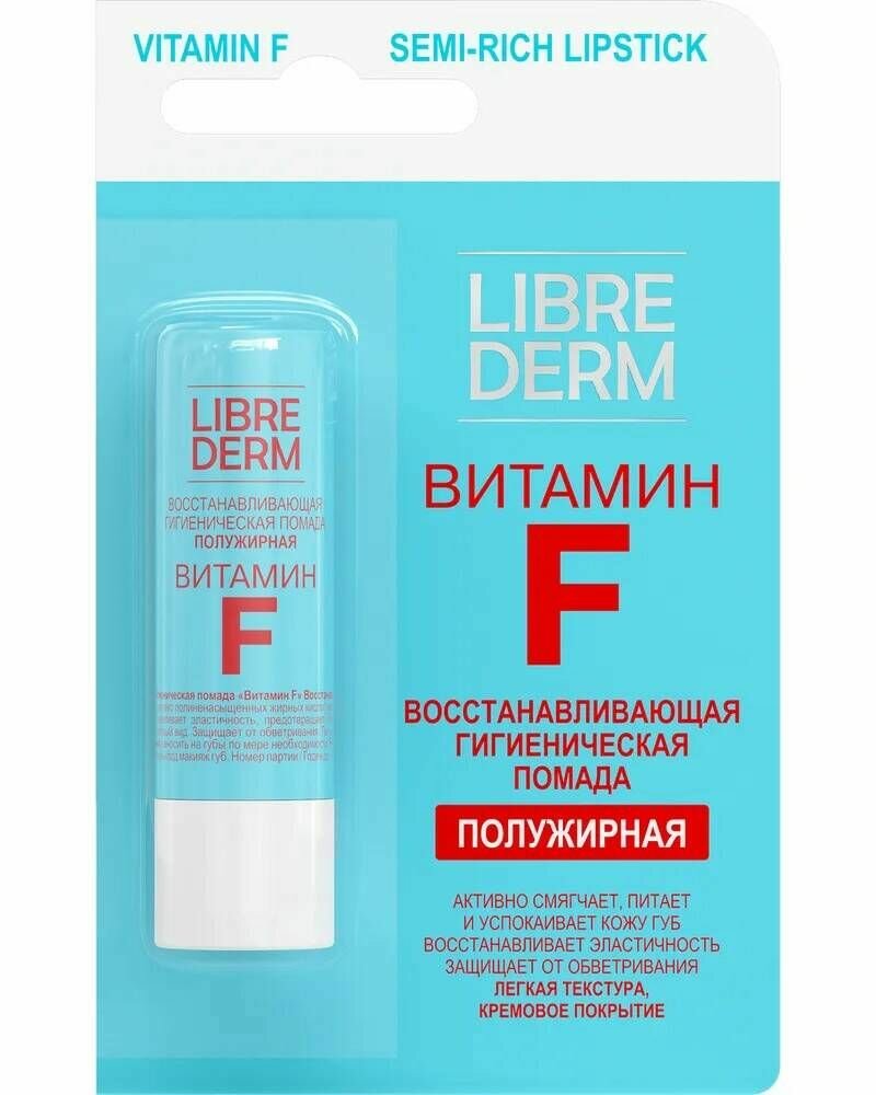 Librederm/ Помада гигиеническая восстанавливающая Витамин F Полужирная, 4 г, 2 шт информация: