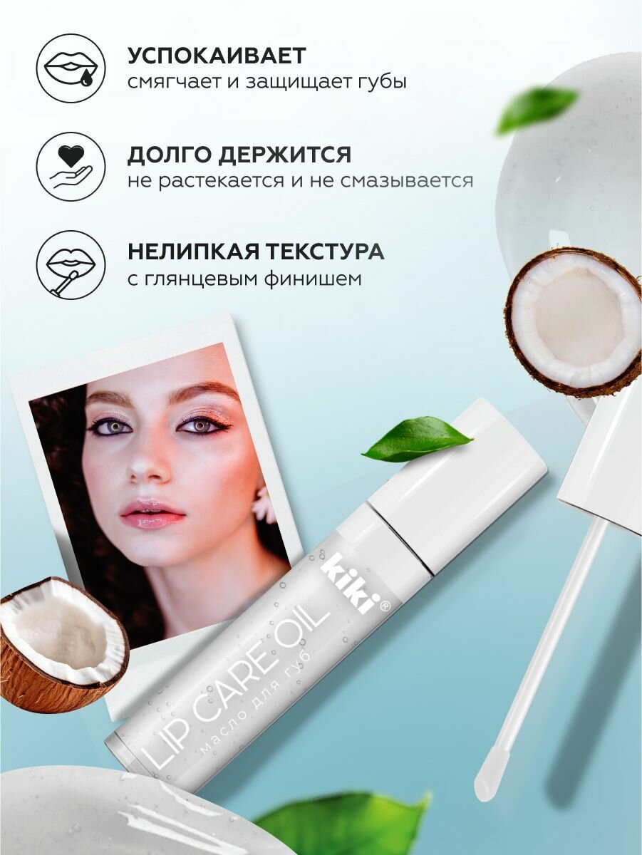 10 цен на Масло для губ KIKI LIP CARE OIL с ароматом "кокос", прозрачное, блеск и увлажнение, тон 03, 3,5 мл, кики
