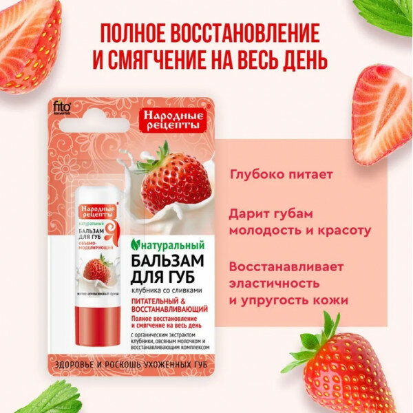 Бальзам для губ «Клубника со сливками» серии "Народные рецепты", 4.5гр информация: