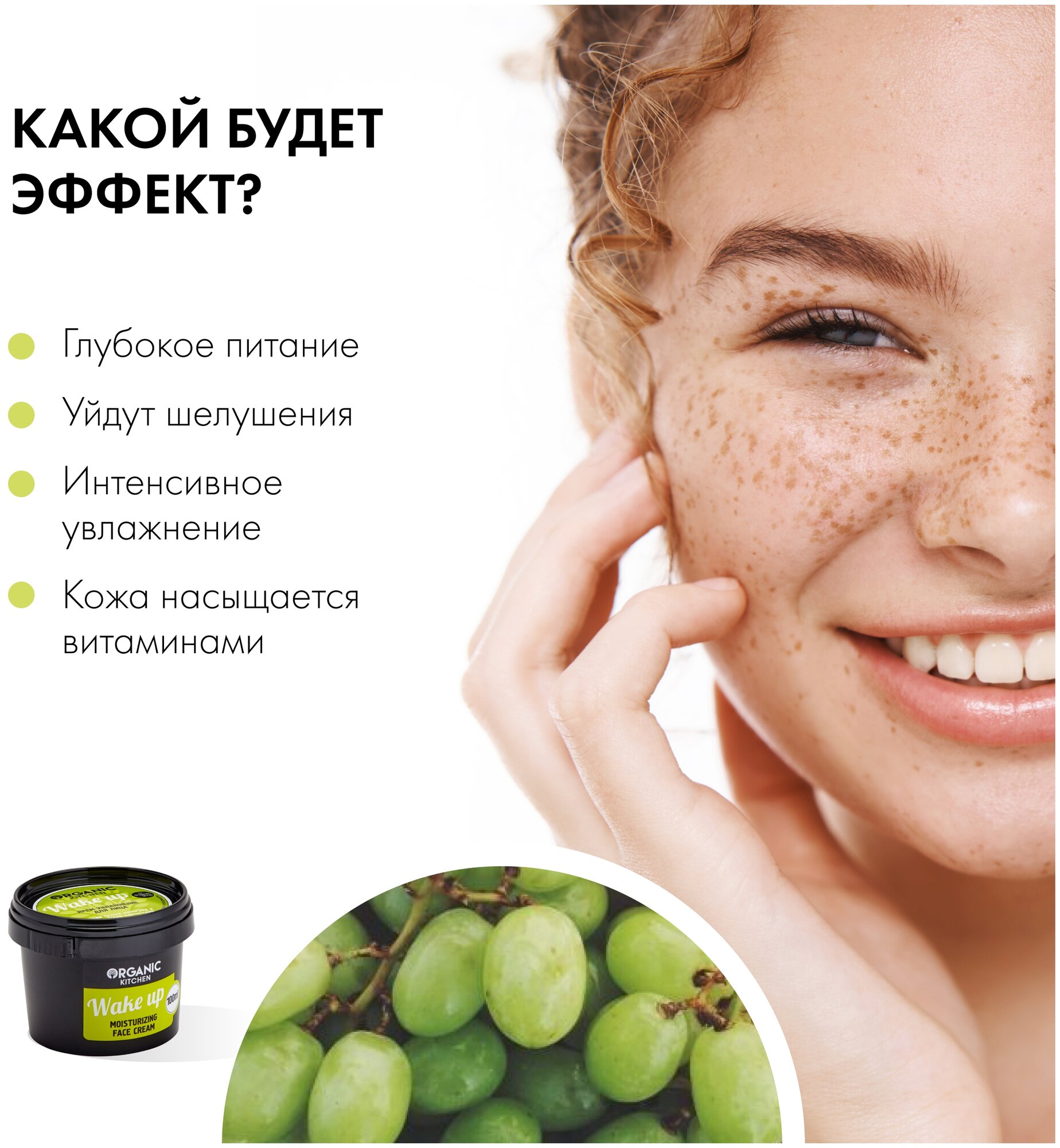 Отзывы на Увлажняющий крем для лица Organic Kitchen Wake up антивозрастной питательный с маслом виноградной косточки 100 мл