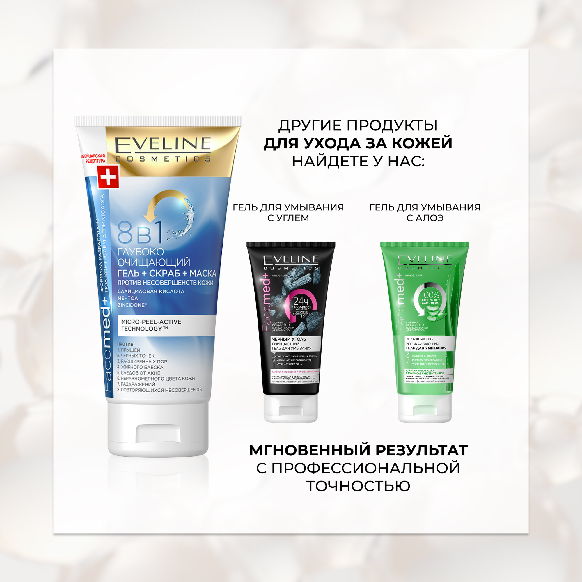 10 цен на Гель + скраб + маска кожи 8в1 Eveline FACEMED+ глубоко-очищаяющая против несовершенств, 150мл