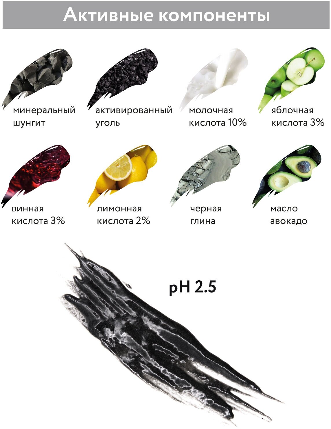| Активный ингредиент | активированный уголь / винная кислота / глина / древесный уголь / лимонная кислота / молочная кислота / фруктовые кислоты / шунгит / яблочная кислота |
