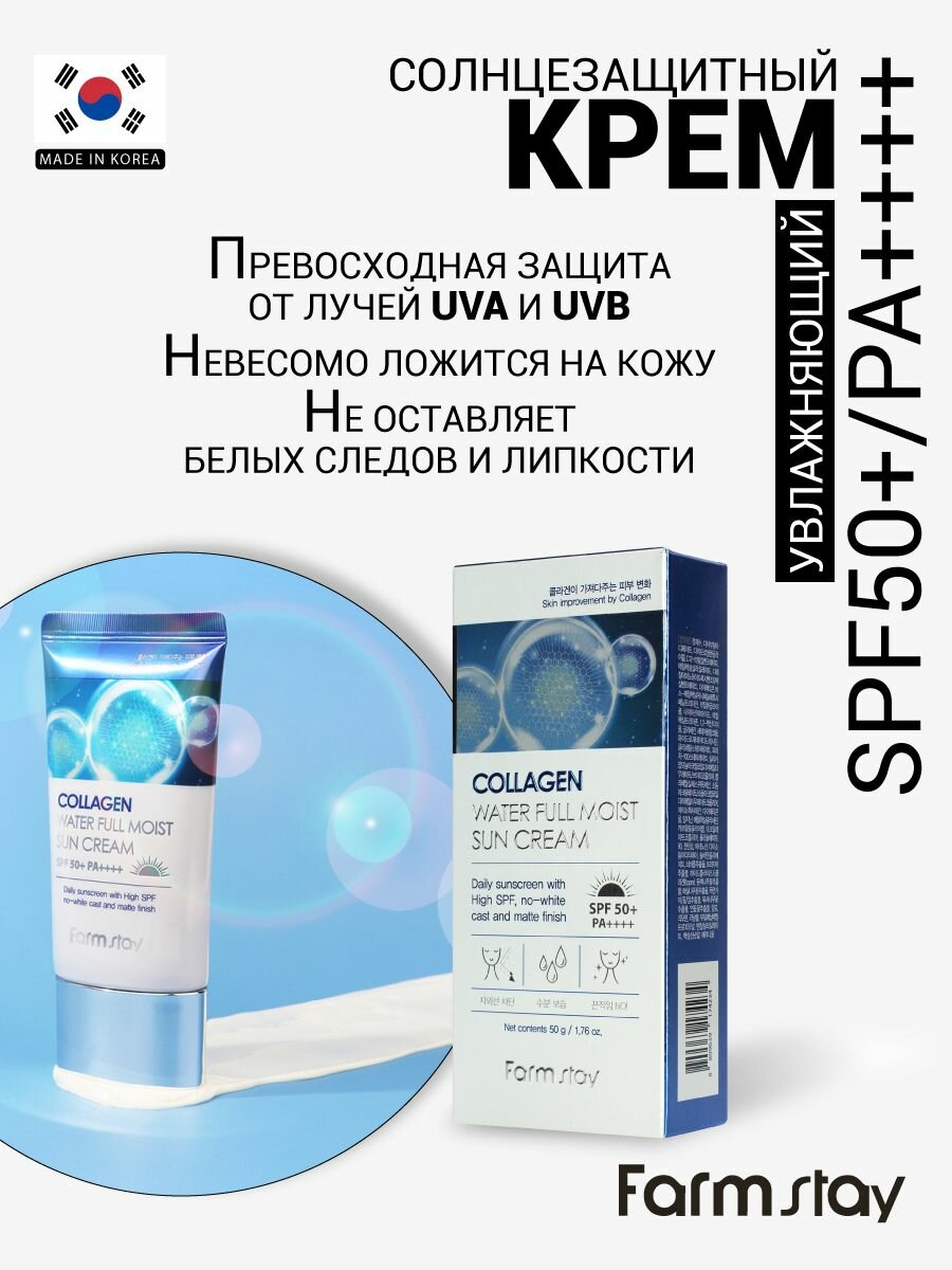 Крем солнцезащитный увлажняющий с коллагеном Farm stay Collagen Water Full Moist Sun Cream SPF 50+, PA++++ с коллагеном, 50г 865 ₽