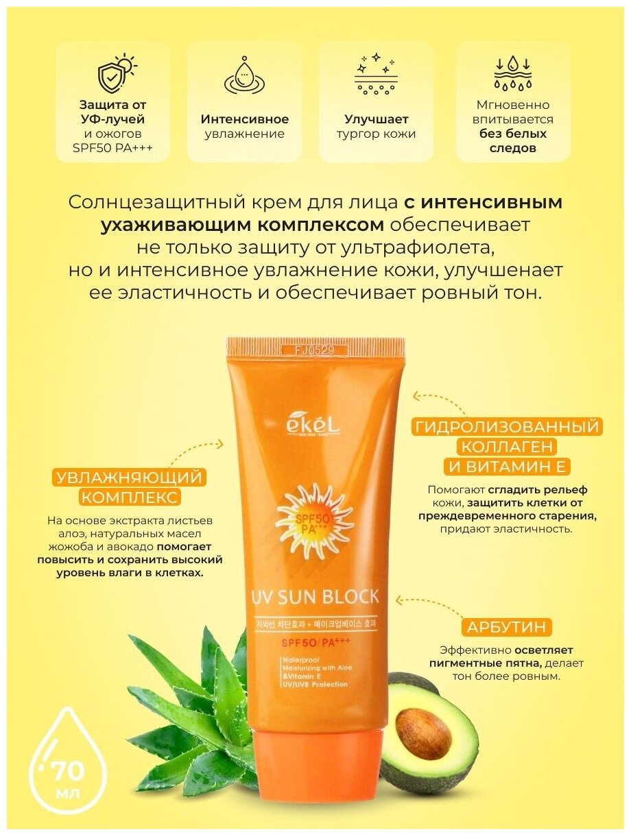 EKEL Солнцезащитный крем для лица Ekel, с пептидами SPF 50+/PA+++, 70 мл