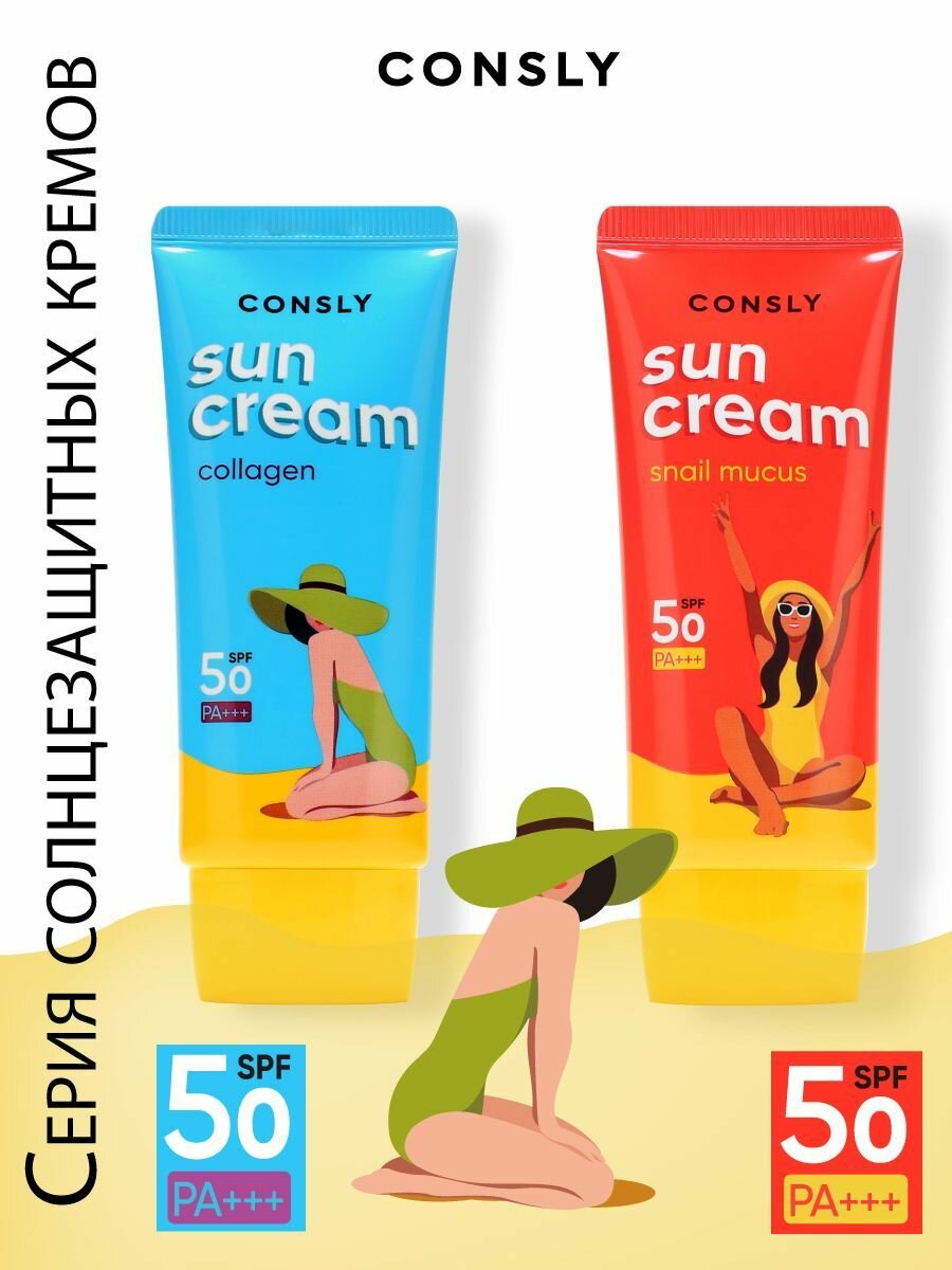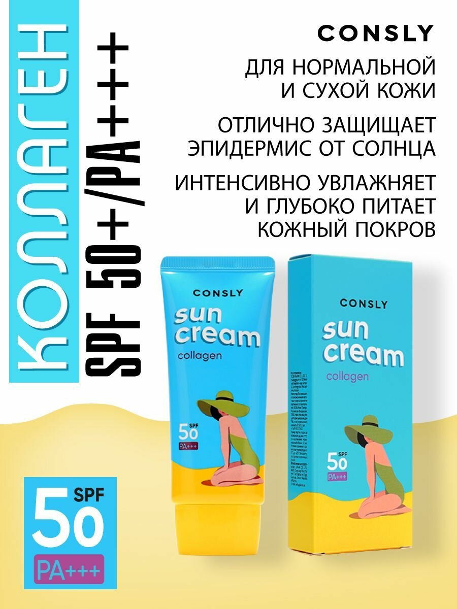 Consly Солнцезащитный крем с морским коллагеном SPF 50+/PA+++ для нормальной и сухой кожи, 50мл 731 ₽
