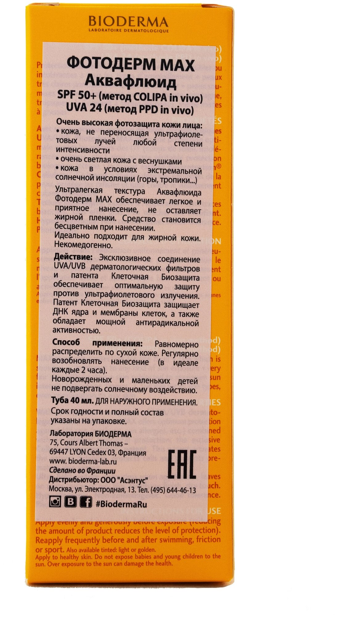Bioderma Photoderm аквафлюид солнцезащитный SPF50+ 40 мл 1 шт информация: