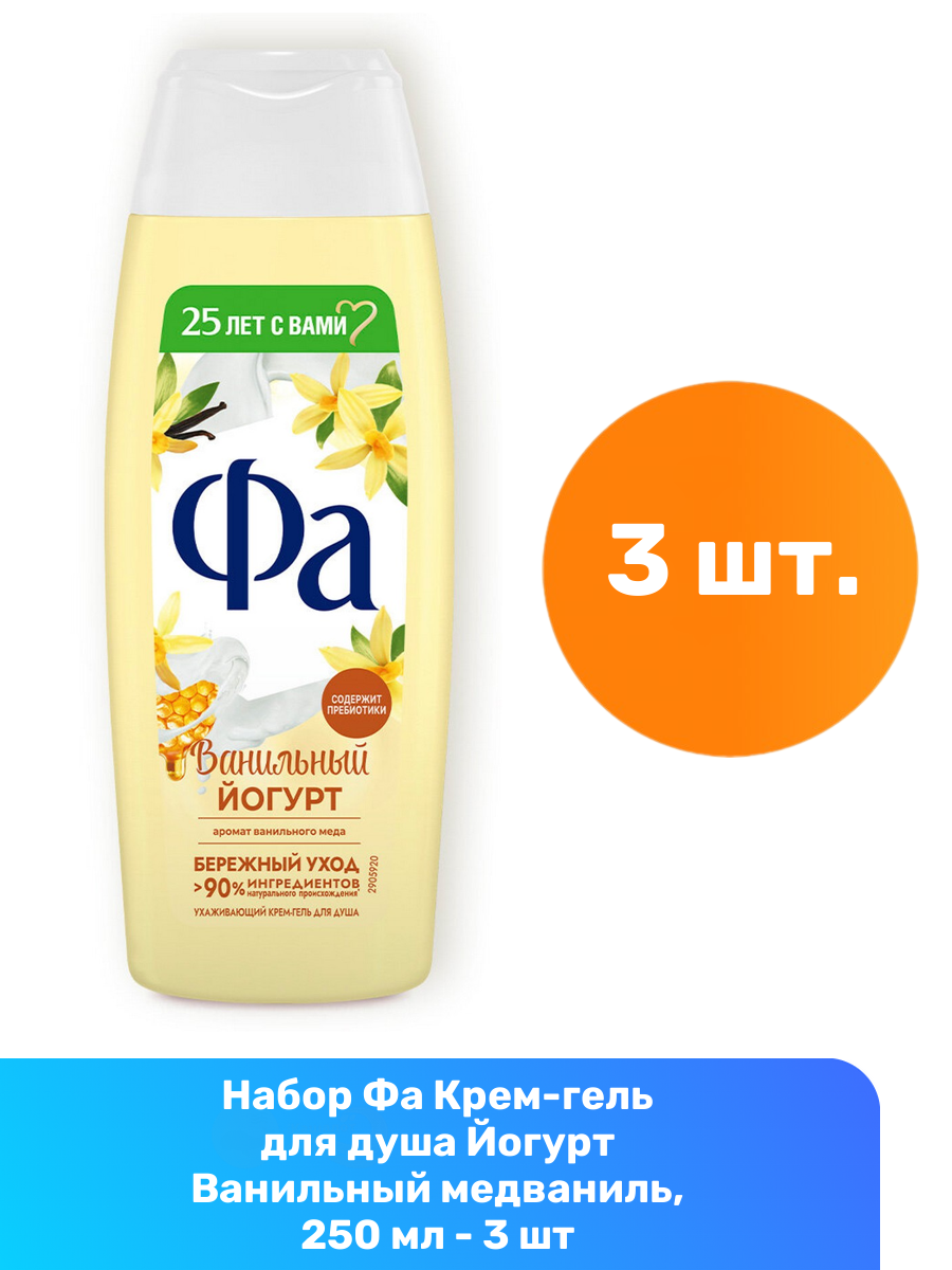 Fa Гель для душа Yoghurt Ванильный мед 250 мл, 3 штуки в комплекте. информация: