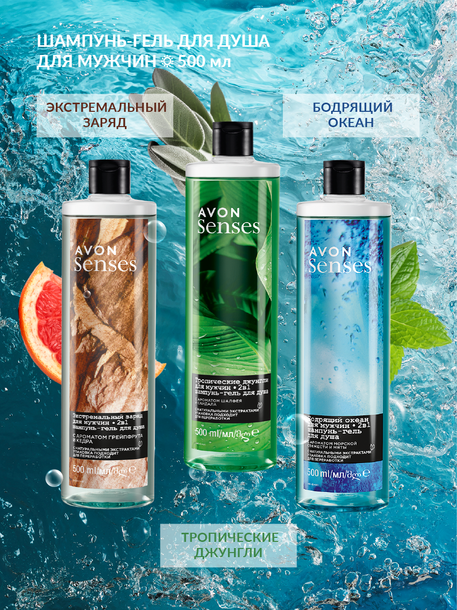 Отзывы на Шампунь-гель для душа для мужчин Avon Senses Тропические джунгли 500 мл.