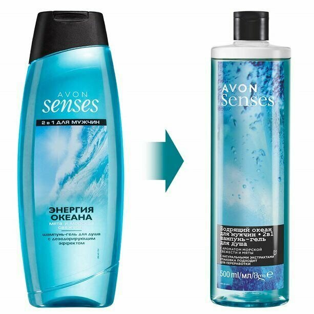 10 цен на Муж шампунь-гель для душа Avon "Бодрящий океан", 500 мл