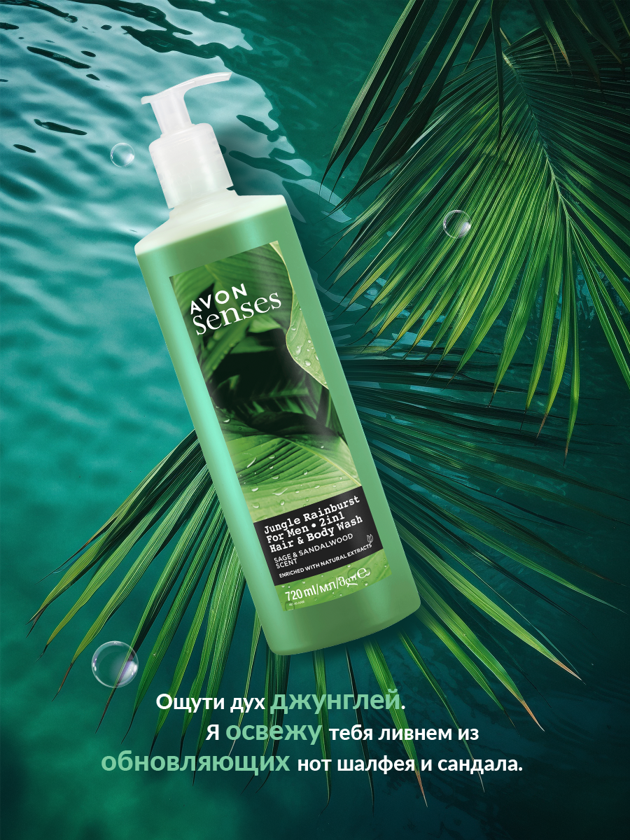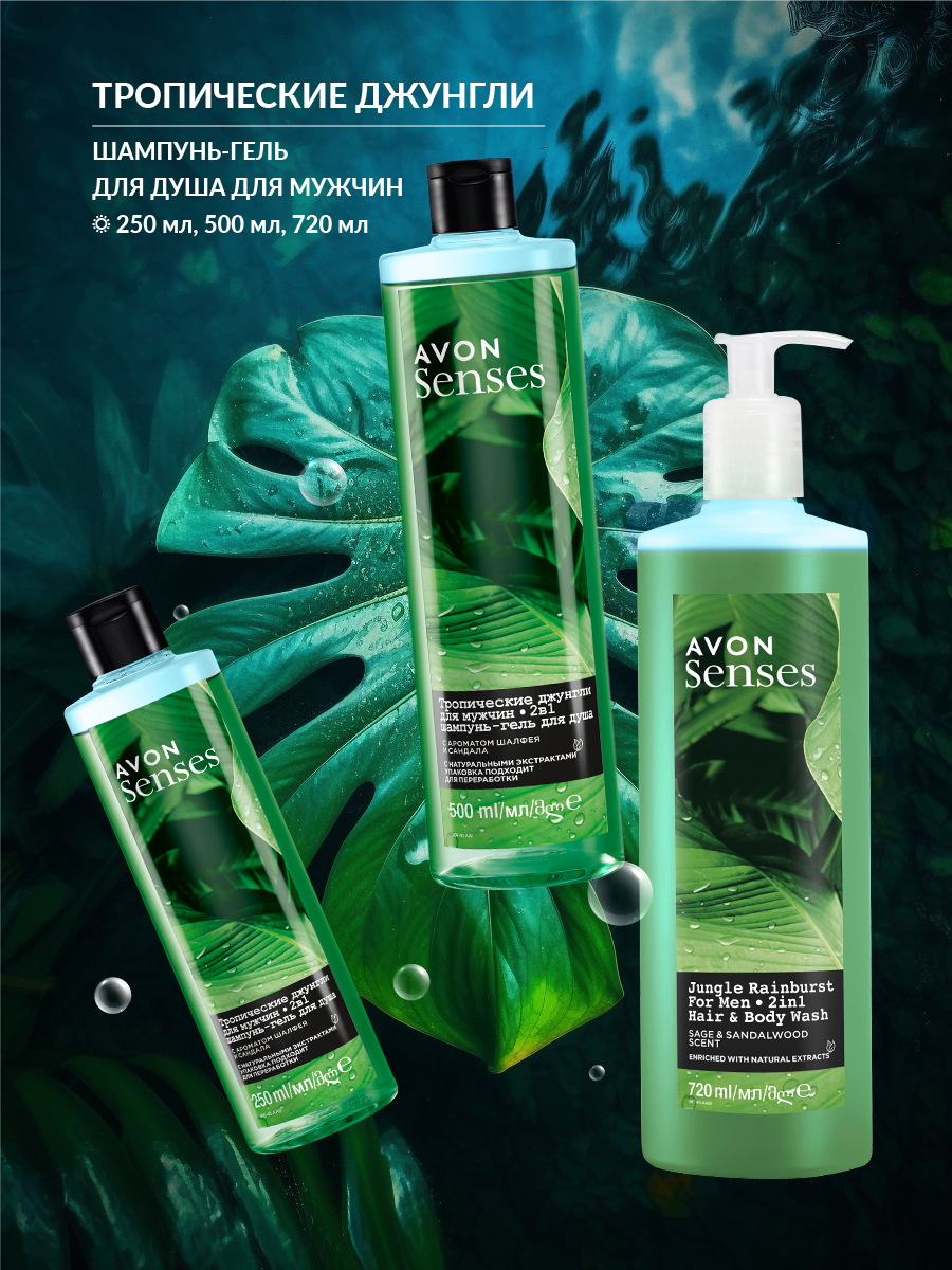 10 цен на Шампунь-гель для душа для мужчин Avon Senses Тропические джунгли 720 мл х 2 шт.