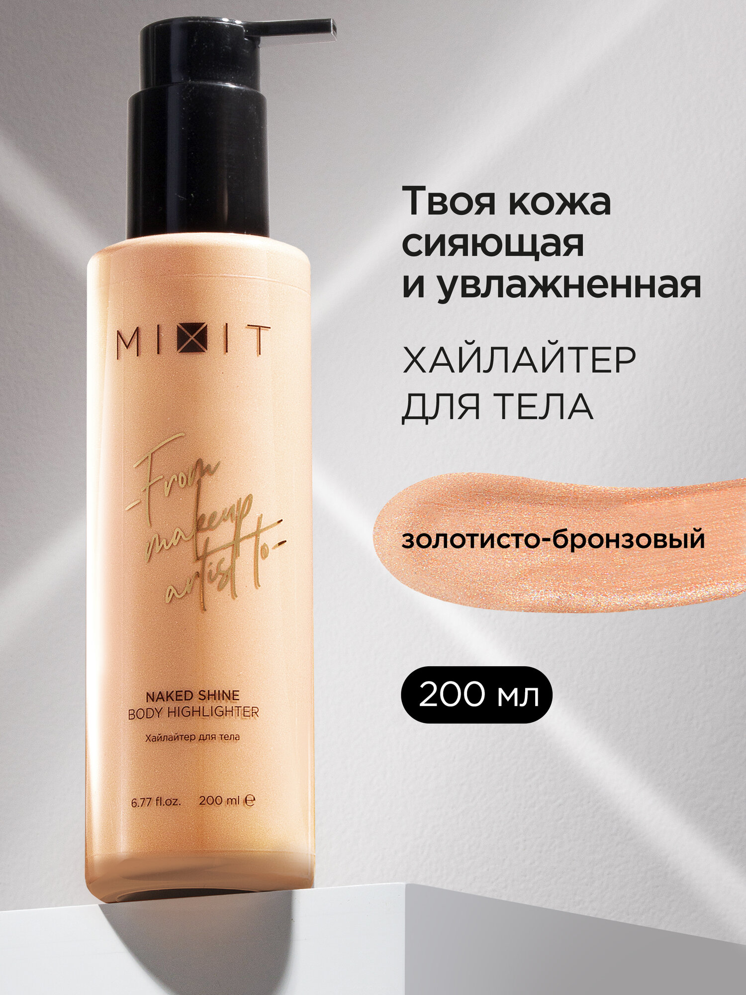 MIXIT Хайлайтер для тела золотисто-бронзового оттенка NAKED SHINE, увлажняющий уход, блеск, сияние и выравнивание тона кожи, 150 мл