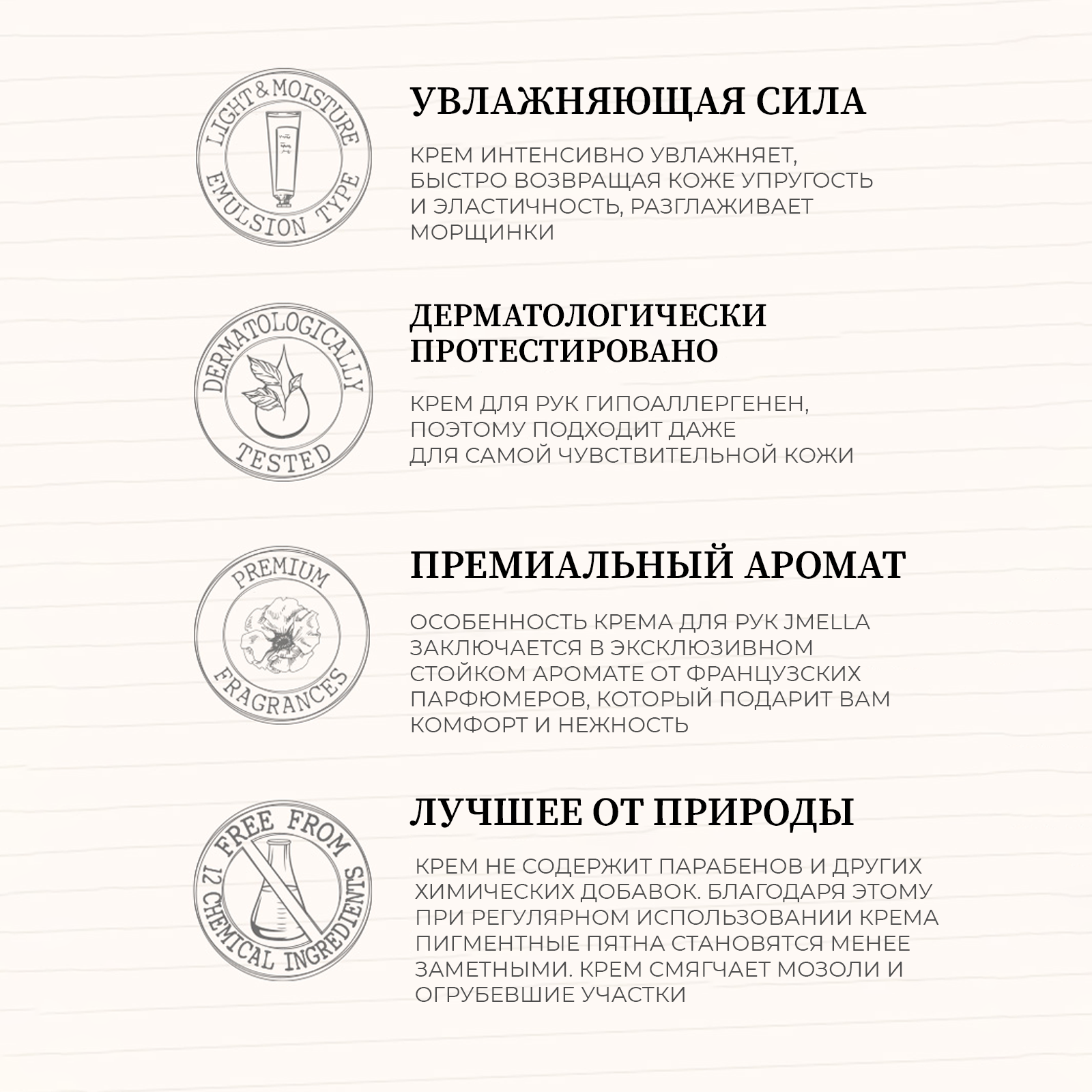 | Не содержит | искусственные консерванты / искусственные красители / парабены / спирт / сульфаты / формальдегиды |