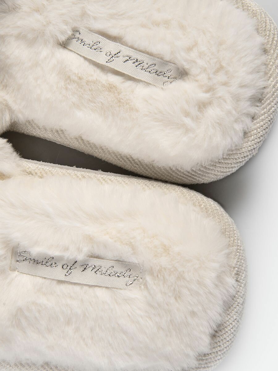 Тапочки Happyfox Home домашние меховые зимние пантолеты, подошва ЭВА, белый HFS3523белый информация: