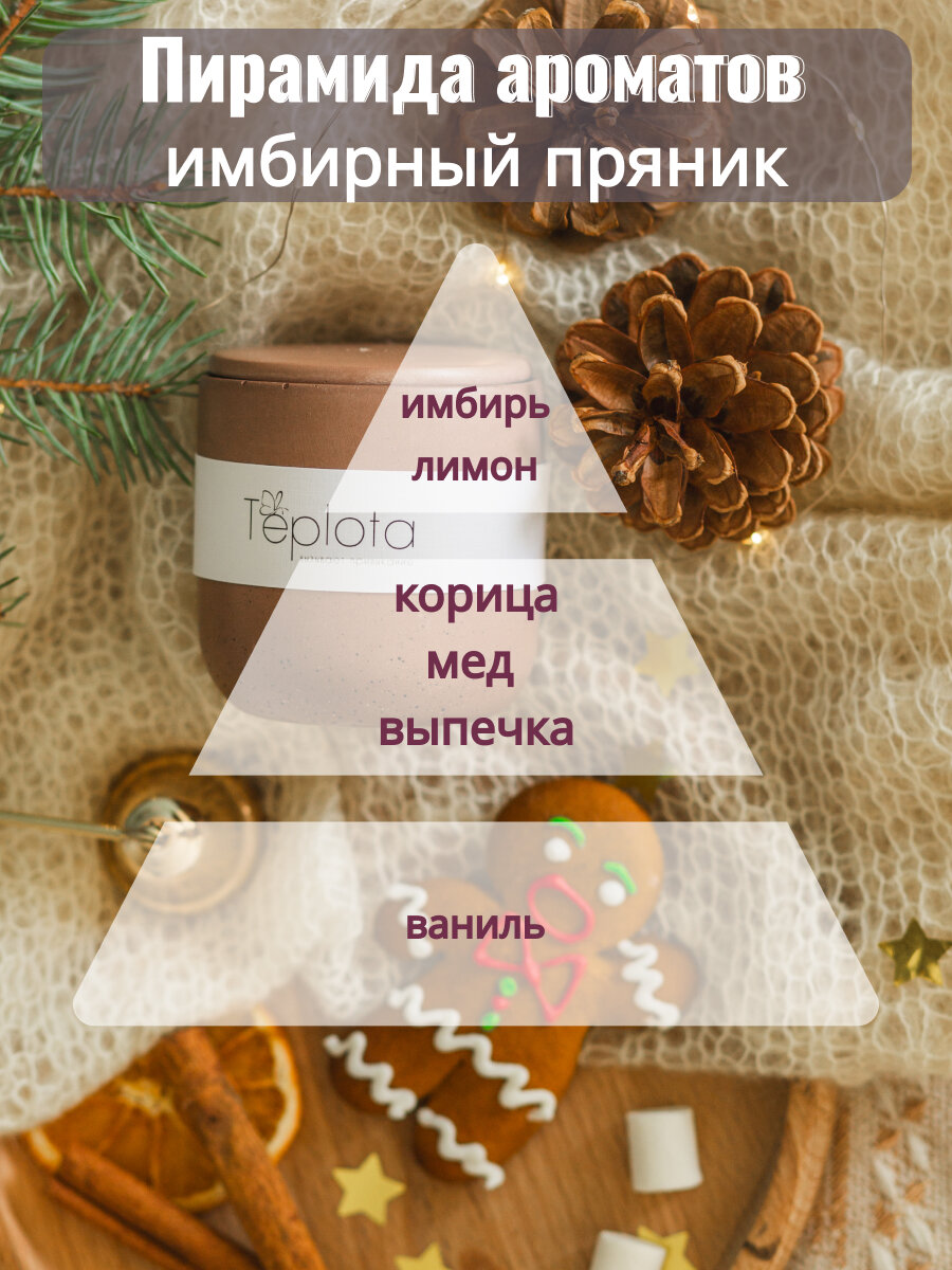 Свечи ароматические Имбирный пряник в стакане из гипса с крышкой 190мл /Соевый воск/Деревянный фитиль / Ручная работа информация: