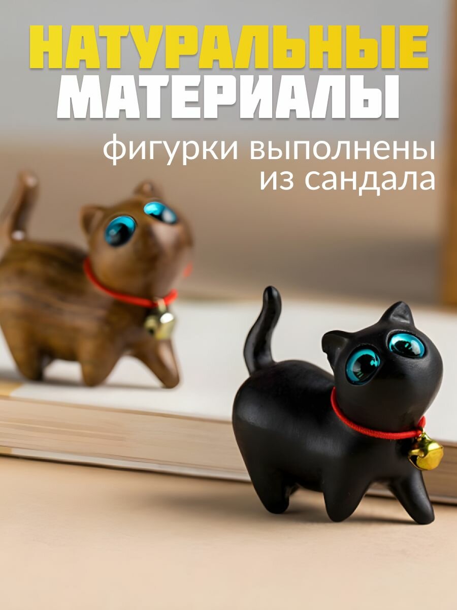 Фигурка котик с бубенчиком из сандалового дерева 750 ₽