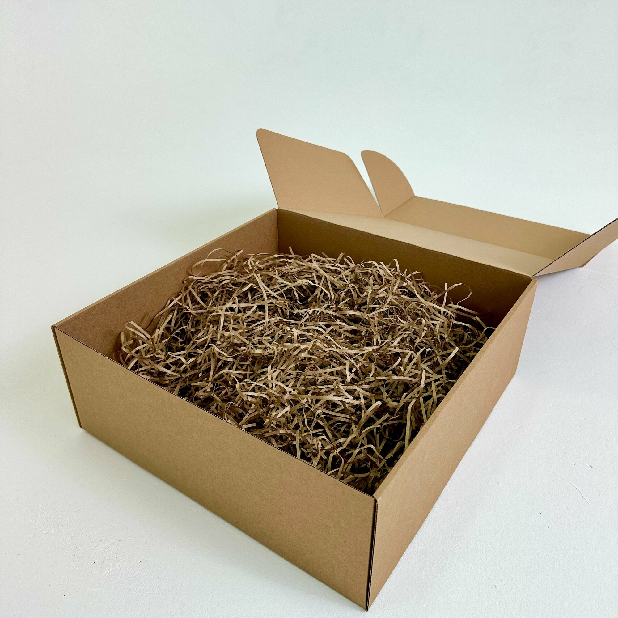 Отзывы на 2 шт - Большая подарочная коробка GILEV 37х37х14см с белой лентой и наполнителем крафт