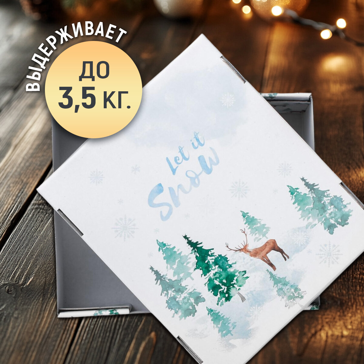 Коробка подарочная новогодняя «Лесная сказка», 31 х 25 х 16 см, белый, для упаковки подарка на Новый год 169 ₽