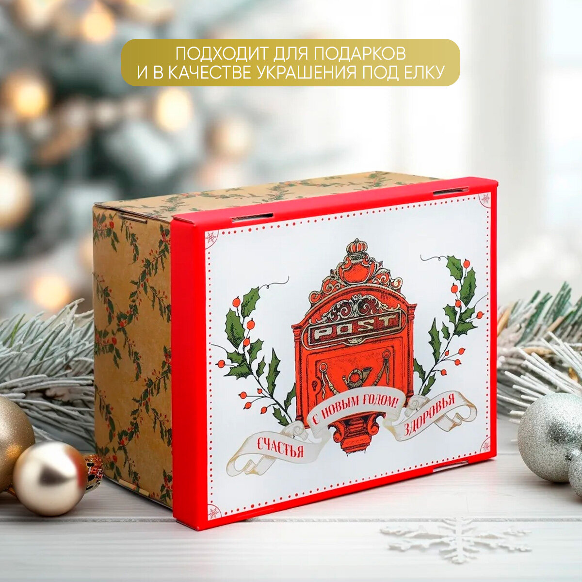Коробка подарочная новогодняя, 31 х 25 х 16 см, для упаковки подарка на Новый год 168 ₽