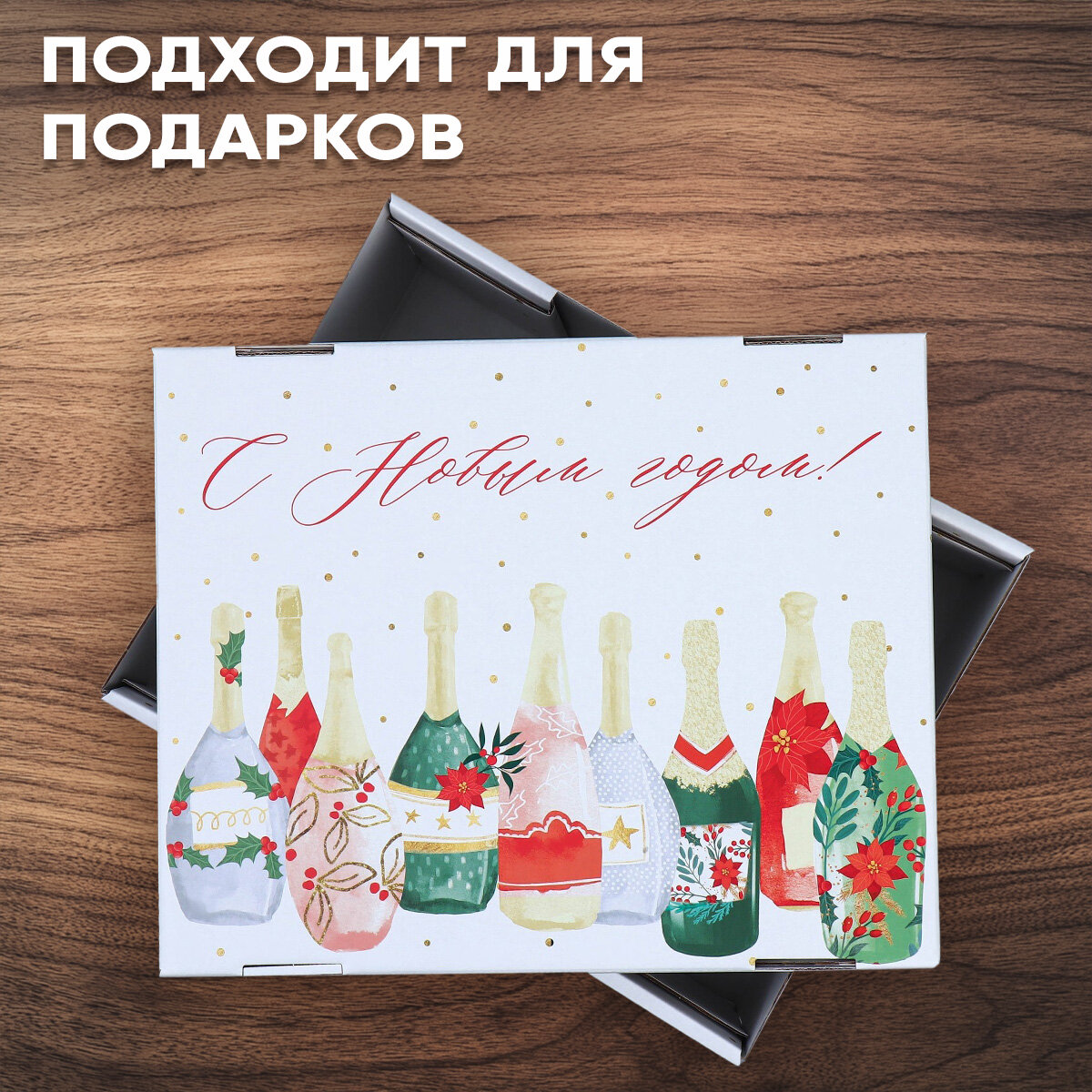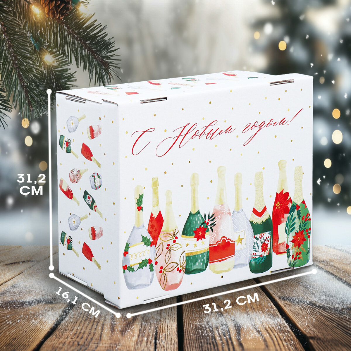 10 цен на Коробка подарочная новогодняя «Шампанское», 31 х 25 х 16 см, белый, картон, для упаковки подарка на Новый год