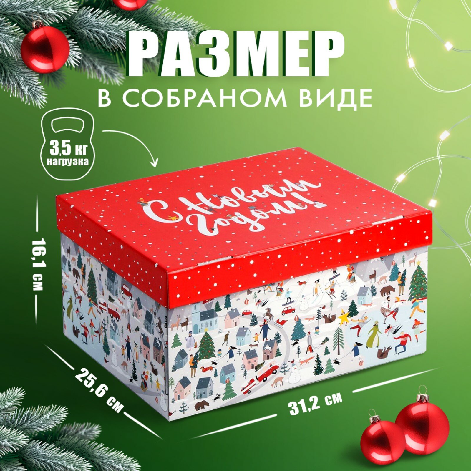 Коробка подарочная новогодняя складная «Новогодний город», 31.2 х 25.6 х 16.1 см 741 ₽