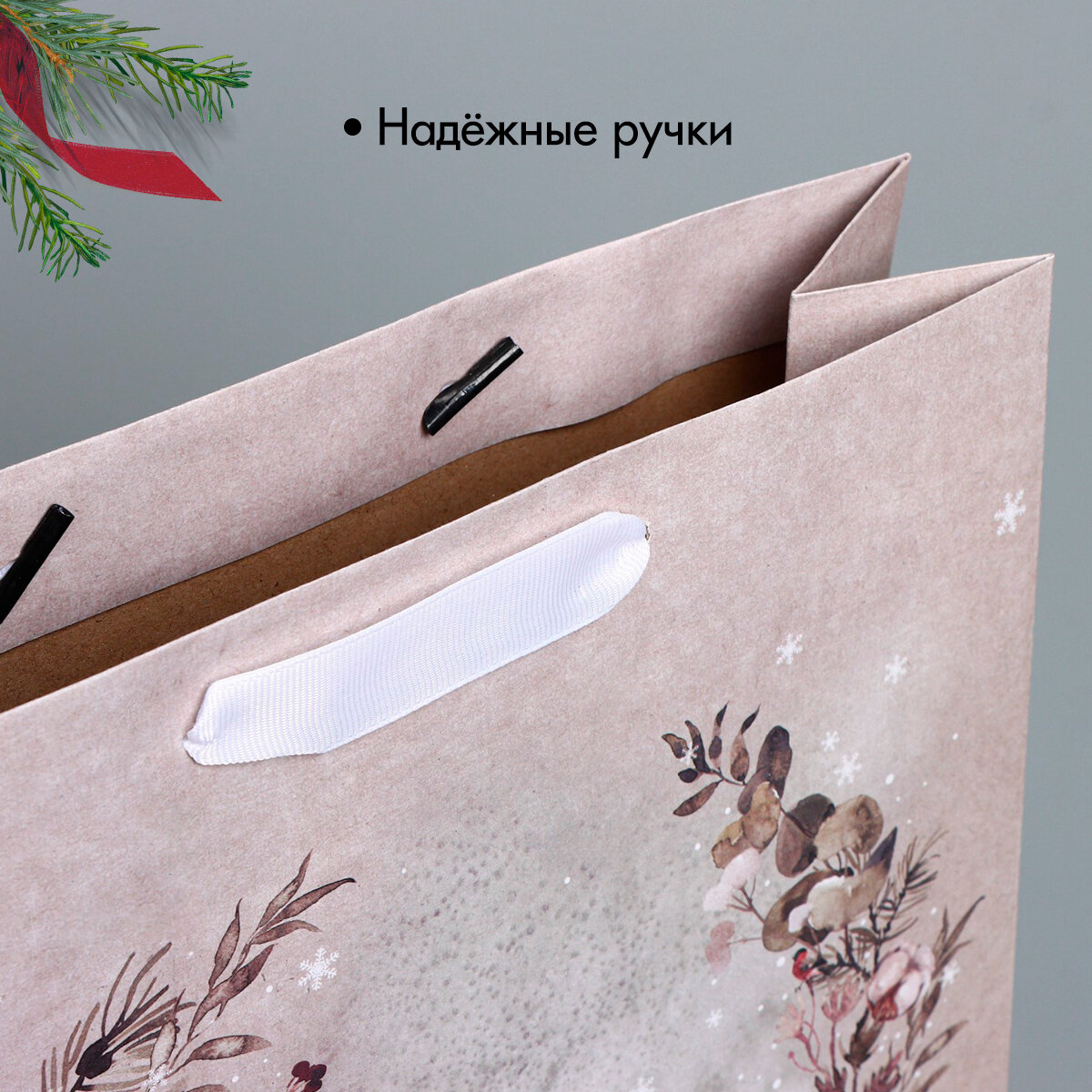 Дарите Счастье Пакет подарочный новогодний ламинированный "Прогулка в зимнем лесу", M 30 х 26 х 9 см 183 ₽
